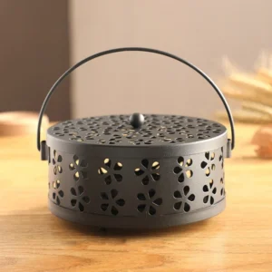 Vintage Cast Iron Mosquito Coil Holder Incense Burner – Portable Iron Incense Burner with Handle for Outdoor Camping Home Decor