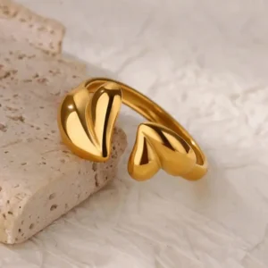 Fashion Hollow Initial Letter Heart Rings For Women Gold Color Stainless Steel A-Z Letter Ring Aesthetic Wedding Jewelry Gift