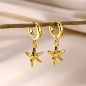 Vintage Starfish Shell Hoop Earrings For Women Gold Color Stainless Steel Ocean Shell Earring Waterproof Wedding Jewelry Gift