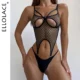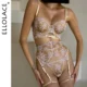 Ellolace Leopard Lingerie Cross Bra Push Up Intimate See Through Lace Hot Girl Underwear Romantic Loving Heart Gloves Stocking