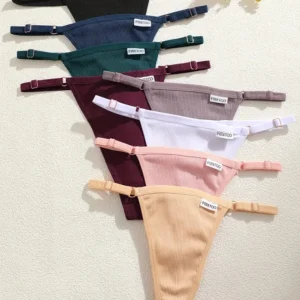 5Pcs Women’s Cotton Adjustable Waist Panties Sexy Thongs G-String Solid Color Seamless Intimate Female Underpants Lingerie S-XL