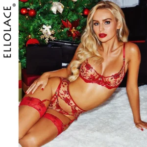 Ellolace Intimate Sexy Female Lingerie Sparkling Red Sequin Honey 5PC Set Charming Jewel Boudoir Women’s Underwear Burning Hot