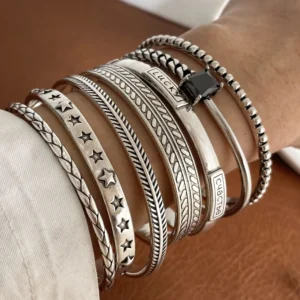 100% Solid 925 Sterling Silver Metal Bracelet for Women Men Vintage Handmade Simple Birthday Gift S-B451