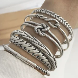100% Solid 925 Sterling Silver Metal Bracelet for Women Vintage Handmade Simple Retro Knots Bracelet Birthday Gift Party
