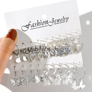 10pcs Gold Color Creative Simple Earrings Set for Women Fashion Temperament Hollowed-out Butterfly Love Earrings Jewelry Gifts