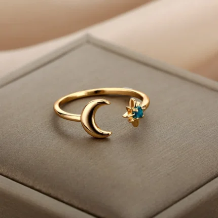 Zircon Star Moon Rings For Women Gold Color Adjustable Stainless Steel Moon Star Ring Wedding Aesthetic Party Jewelry Gift BFF