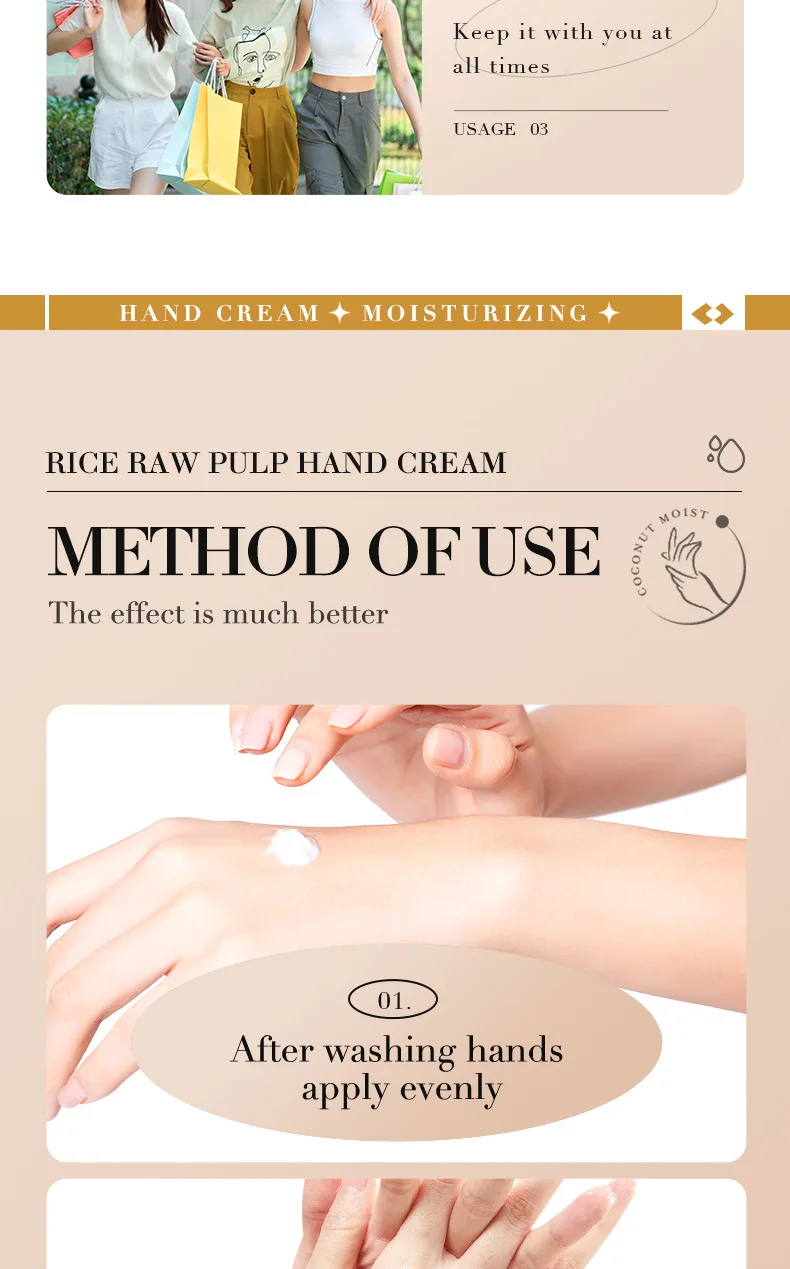 1/2/3/5pcs BIOAQUA White Rice Hand Cream Moisturizing Handcream Nourishing Brightening Hydrating Hands skincare Creams Products