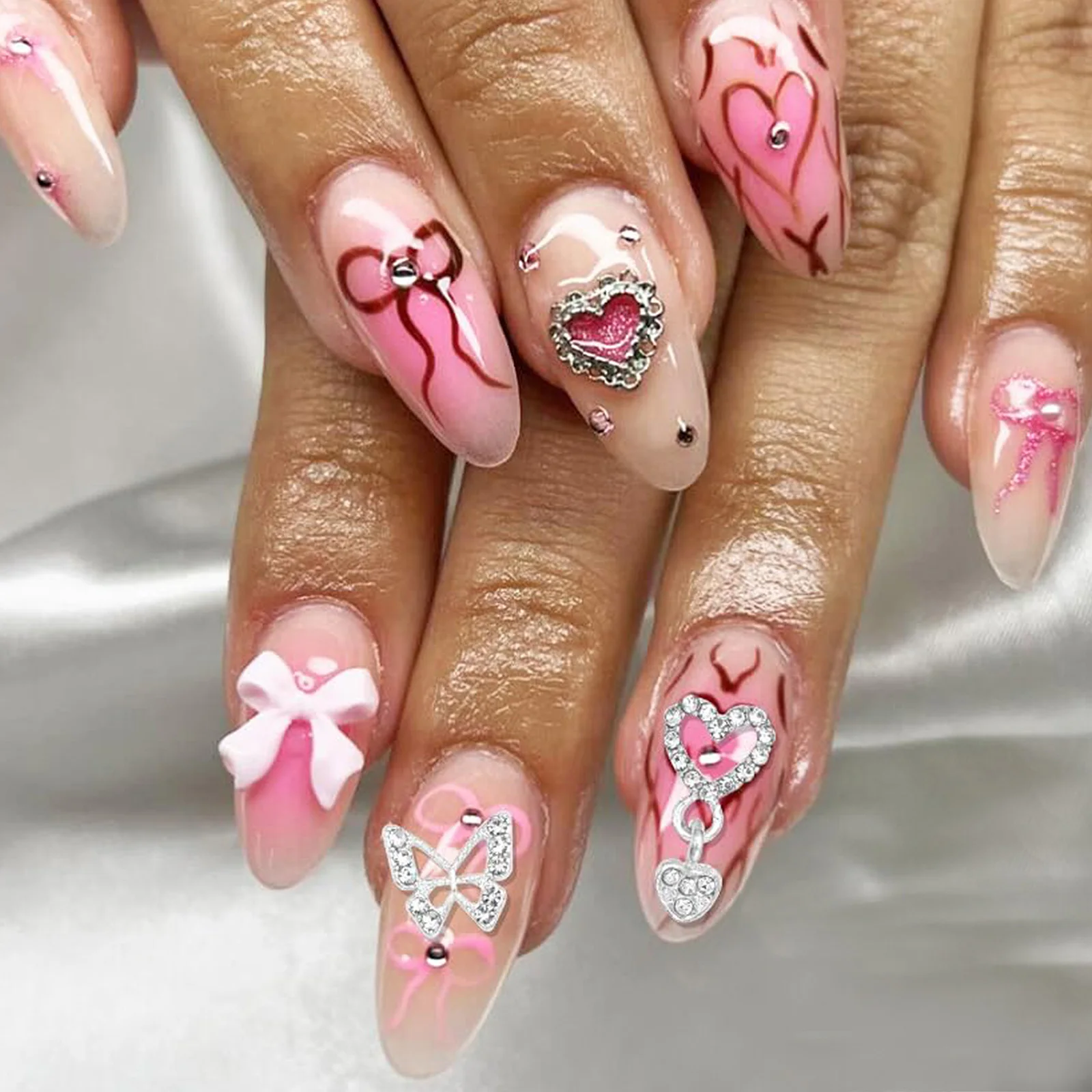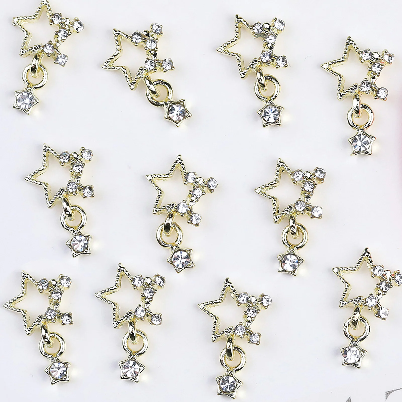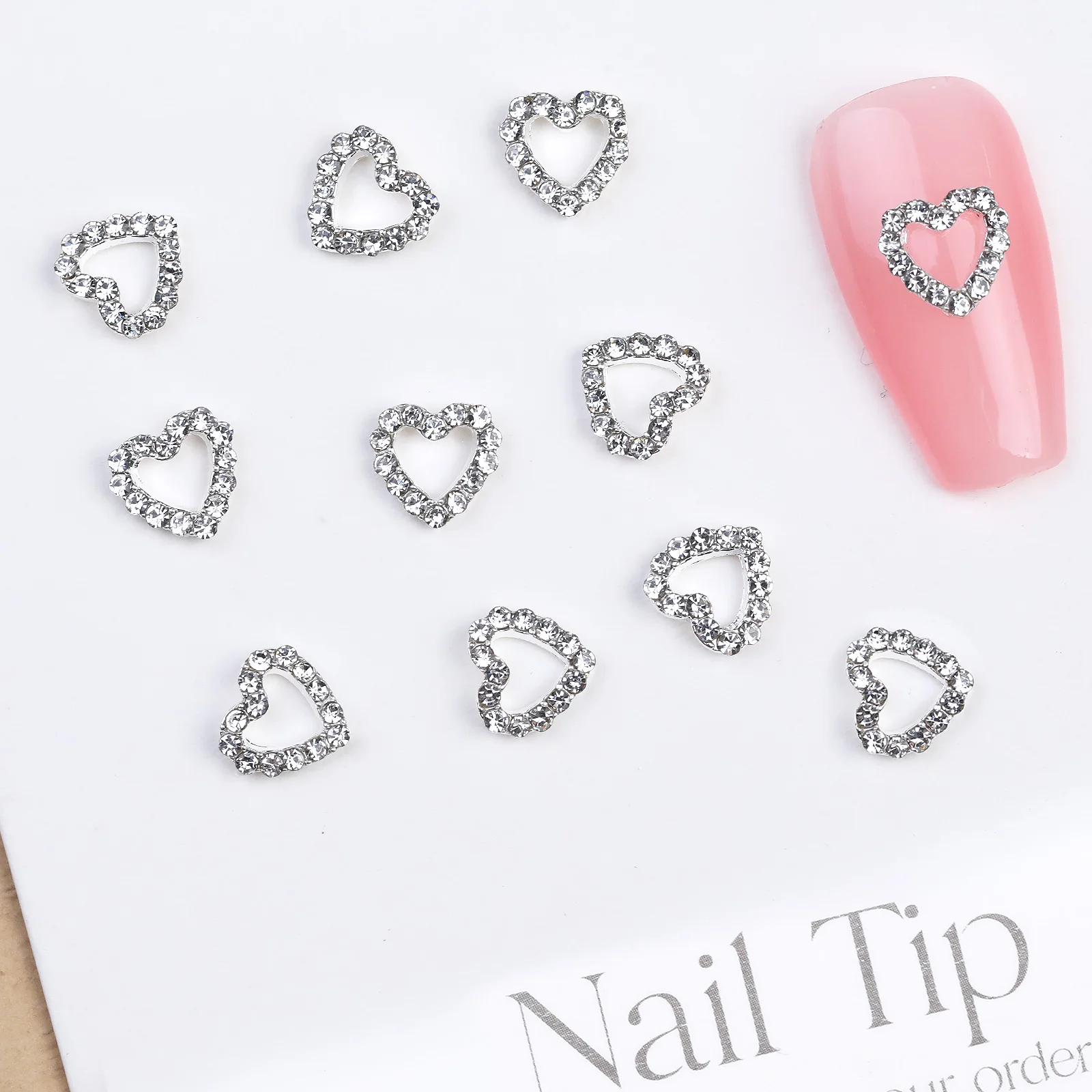 10/20PCs Silver Star Nail Charms With Rhinestones Shiny 3D Alloy Heart Nail Jewelry Y2K Charms For Acrylic Nails Decoration