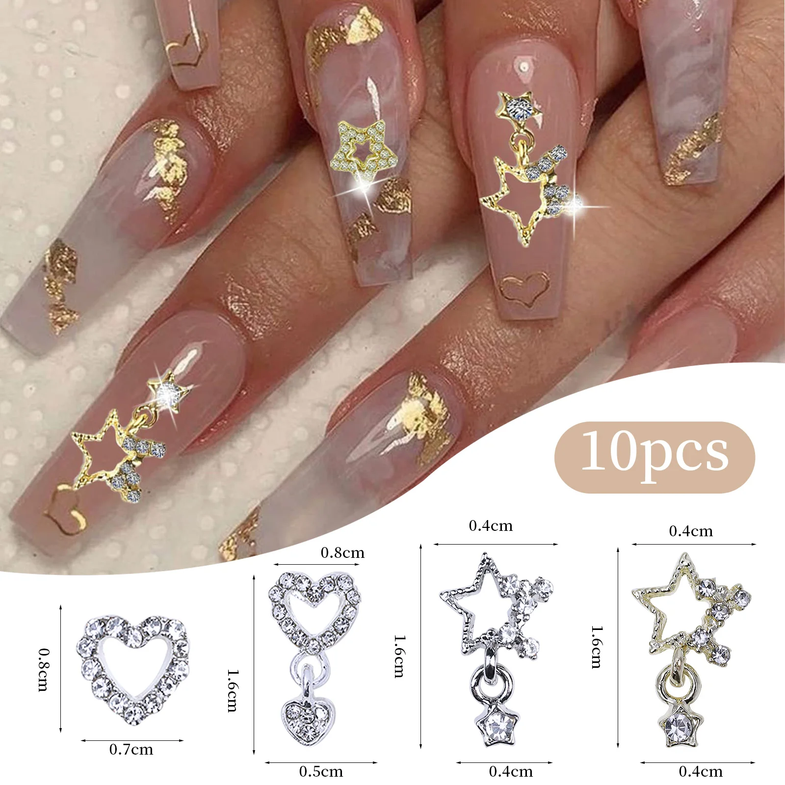 Be the first to review “10/20PCs Silver Star Nail Charms With Rhinestones Shiny 3D Alloy Heart Nail Jewelry Y2K Charms For Acrylic Nails Decoration” Cancel reply