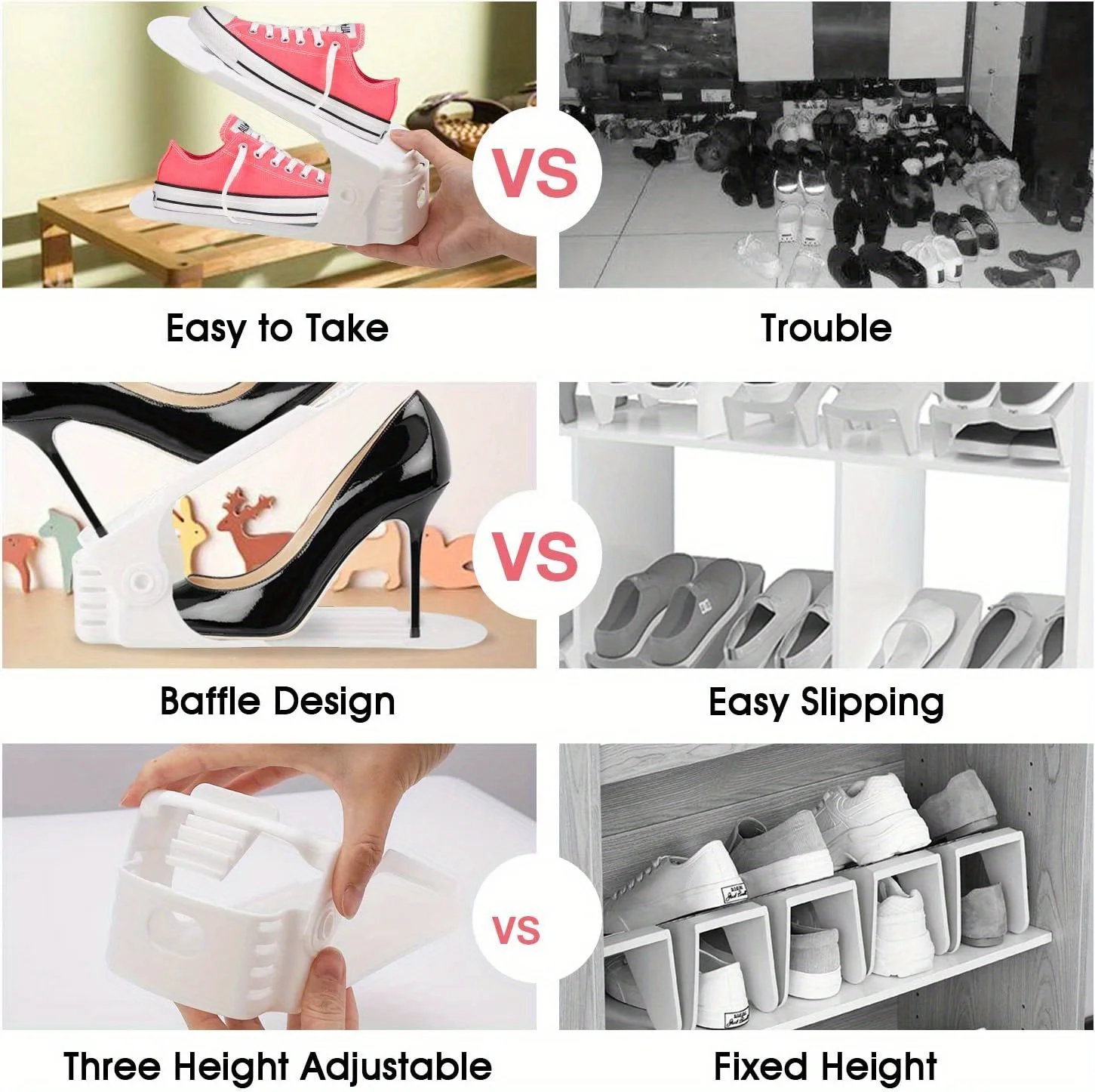 11 reviews for 10 Pack Plastic Shoe Rack Adjustable Closet Organizer Space Saving Design for Dorm Living Room High Heels Sneakers Storage