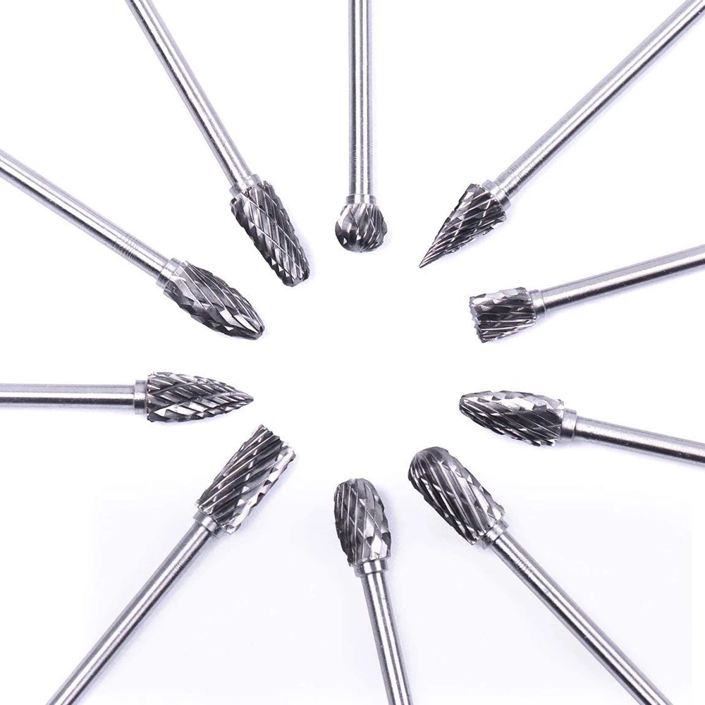 Tungsten Carbide Rotary Burr 10pcs Carving Burr Bits Double Diamond Cut Dremel Tools for Wood Stone Carving Steel Metal Working