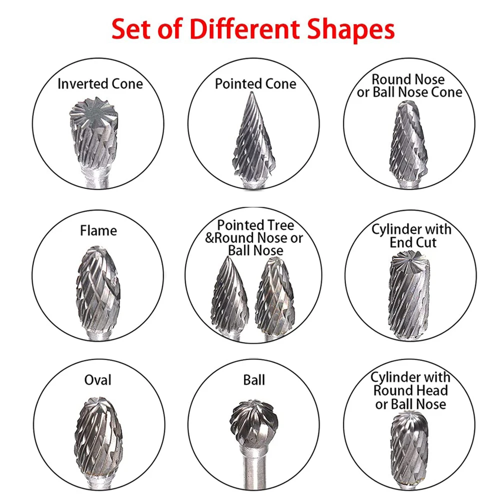 【DOUBLE CUT DESIGN】: The groove lines of these carbide rotary burr's head are crossed, which makes it more suitable for materials with relatively low density, such as wooden, plastic and aluminum.