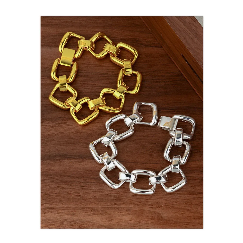 100% Solid 925 Sterling Silver Metal Bracelet for Women Men Vintage Handmade Shinning Gold Squar Bracelet Birthday ChristmasGift