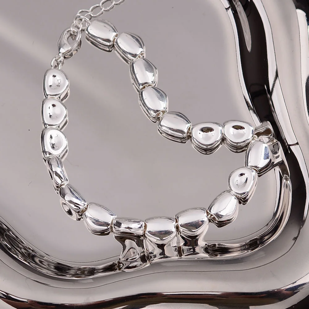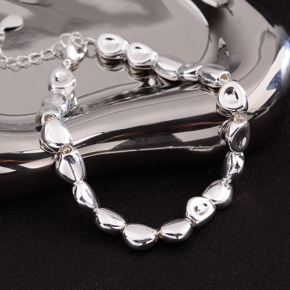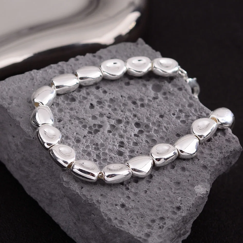 100% Solid 925 Sterling Silver Metal Bracelet for Women Men Vintage Handmade Simple Stone Bracelet Birthday Gift S-B451