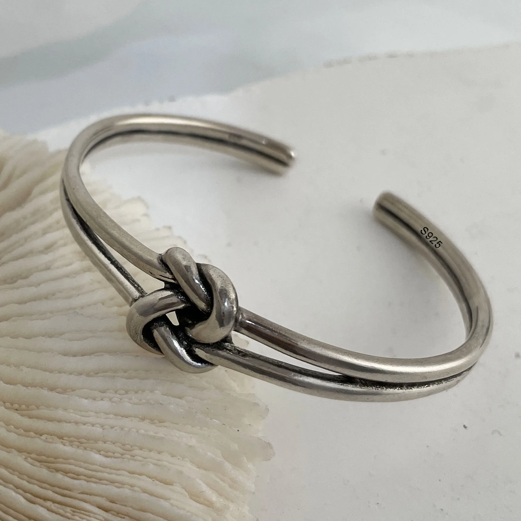 100% Solid 925 Sterling Silver Metal Bracelet for Women Vintage Handmade Simple Retro Knots Bracelet Birthday Gift Party