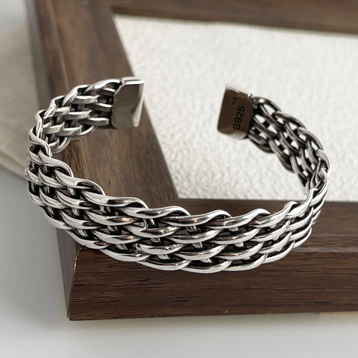 100% Solid 925 Sterling Silver Retro Bracelet for Women Men Vintage Handmade Chain Patern Bracelet Birthday Gift
