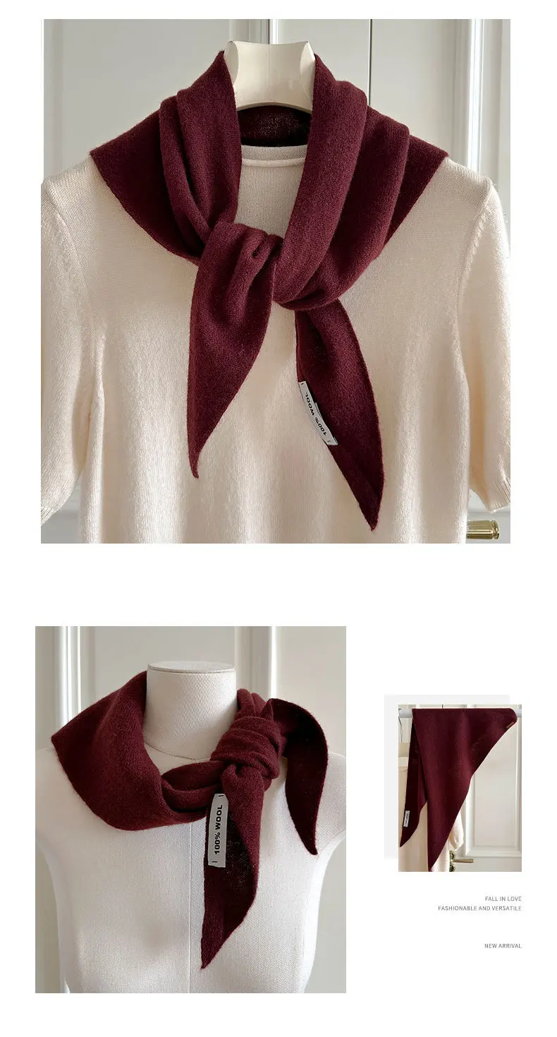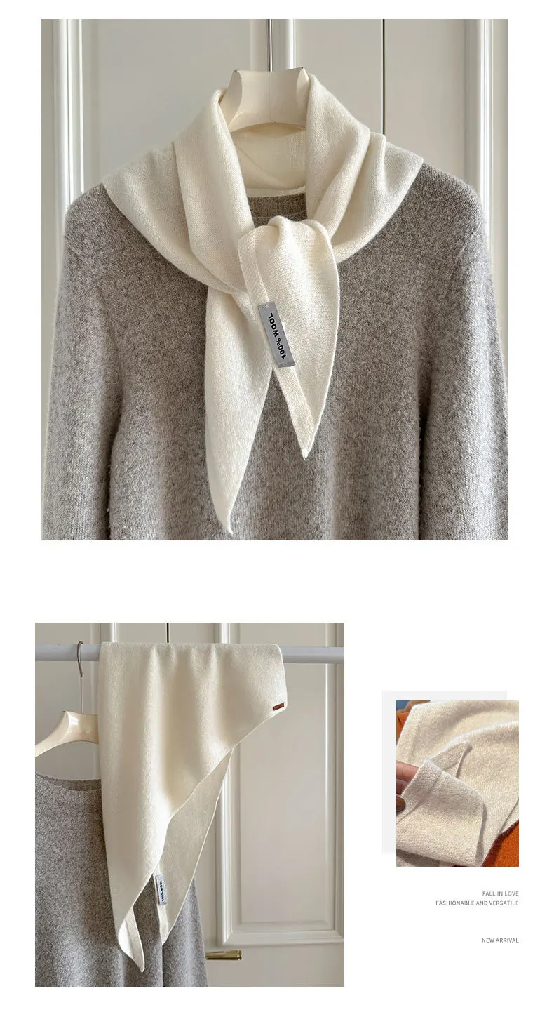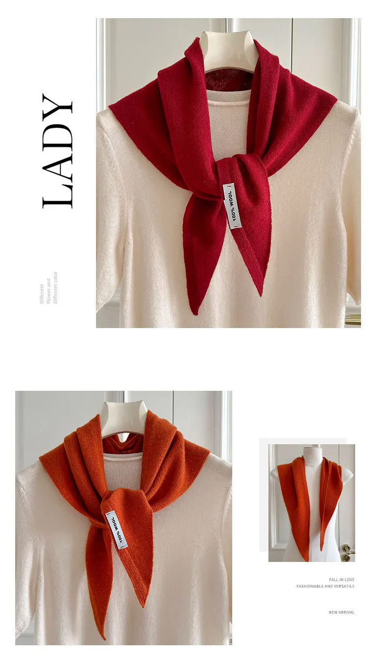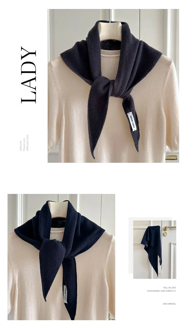 100% Wool Winter Scarf For Women Warm Triangle Knit Scarves Hijab Solid Lady Shawl Wrap Female Pashmina Bandana Head Scarfs New