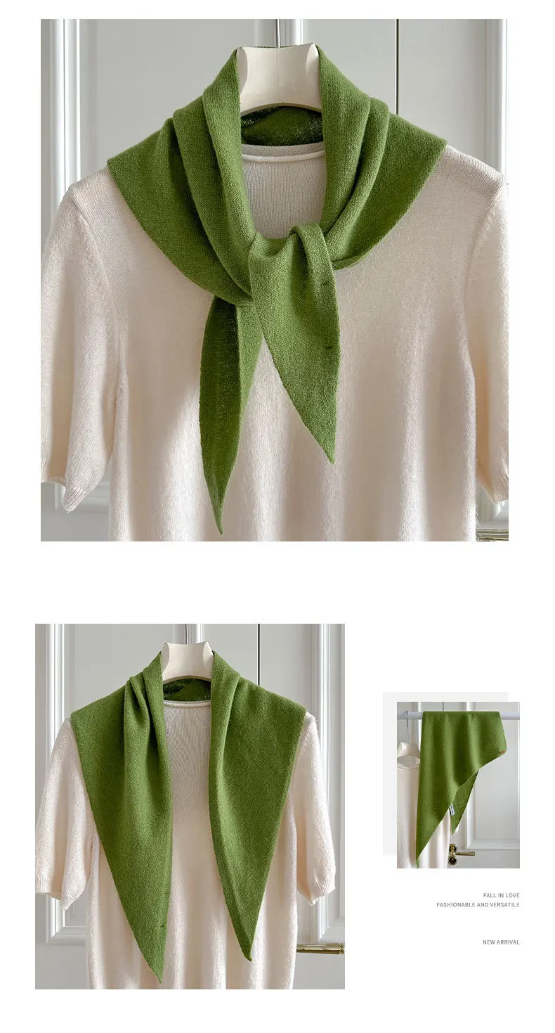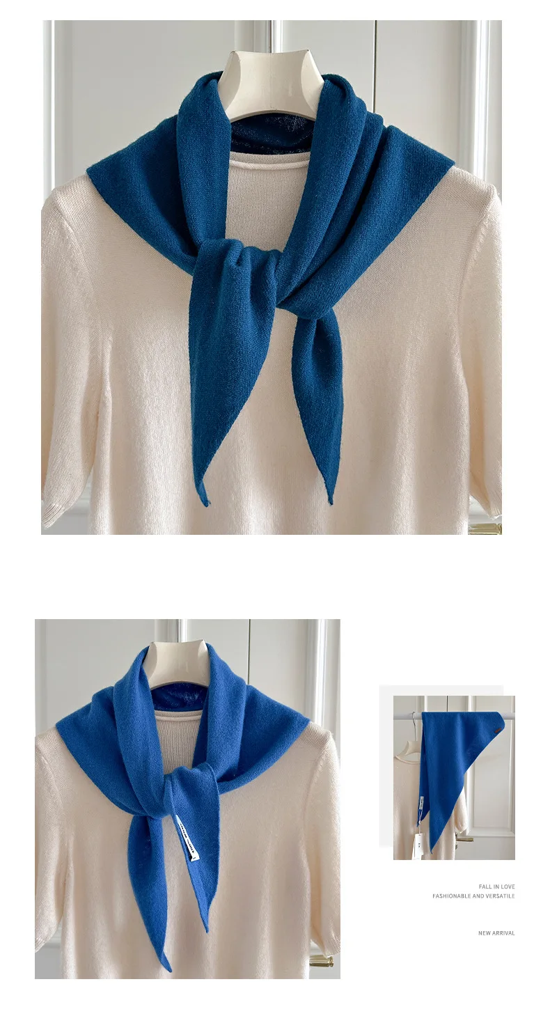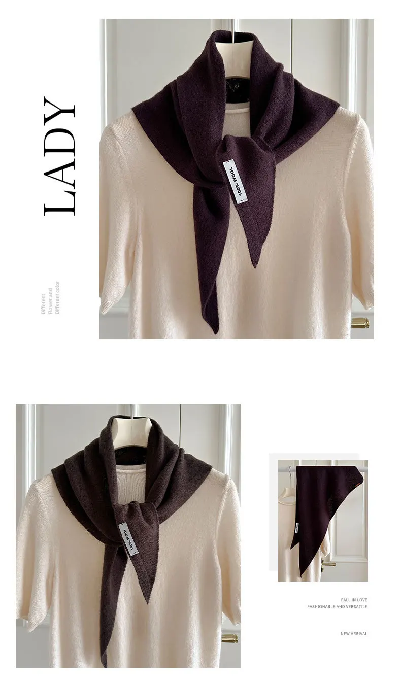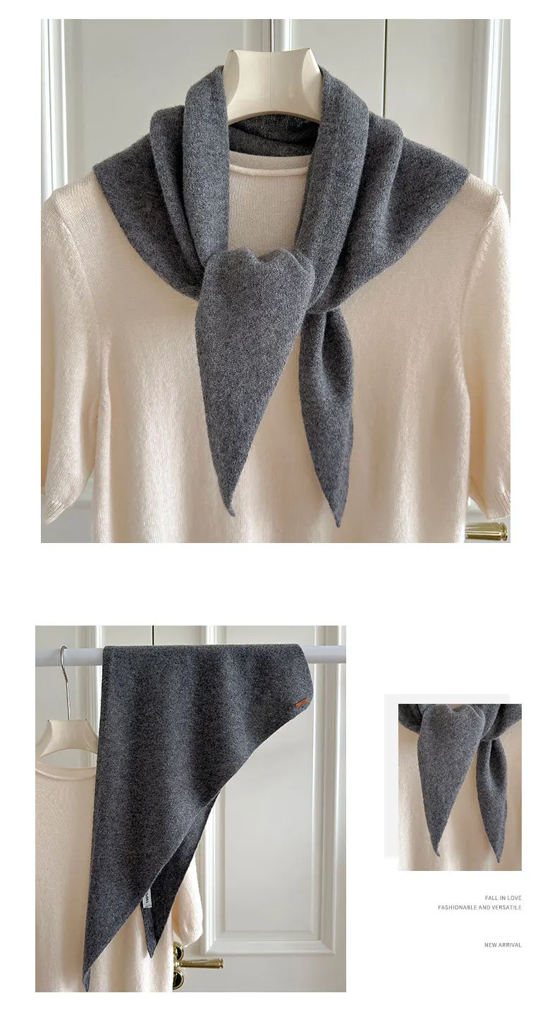 100% Wool Winter Scarf For Women Warm Triangle Knit Scarves Hijab Solid Lady Shawl Wrap Female Pashmina Bandana Head Scarfs New