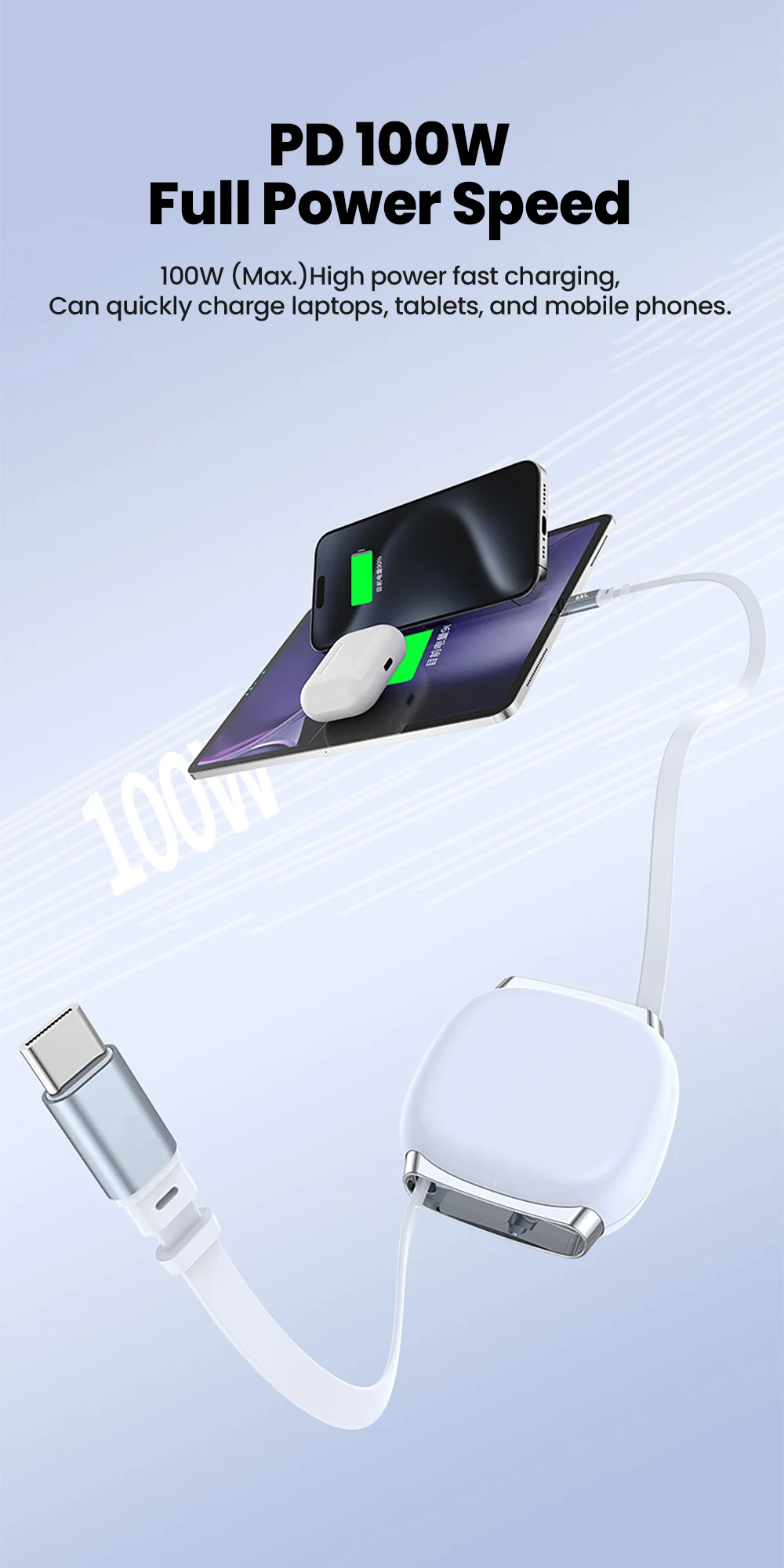 100W Fast Charge Type C to Type C Cable with Box Telescopic Fast Phone Charging Wire For iphone 16 15 Xiaomi Samsung s24 s23
