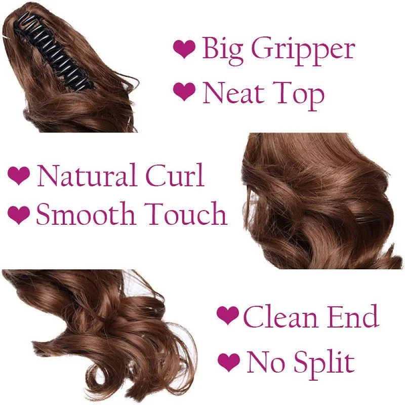 10Inch Synthetic Short Wavy Curly Ponytail Claw Clip in Hair Extension Brown Blonde Black Hairpiece for Women