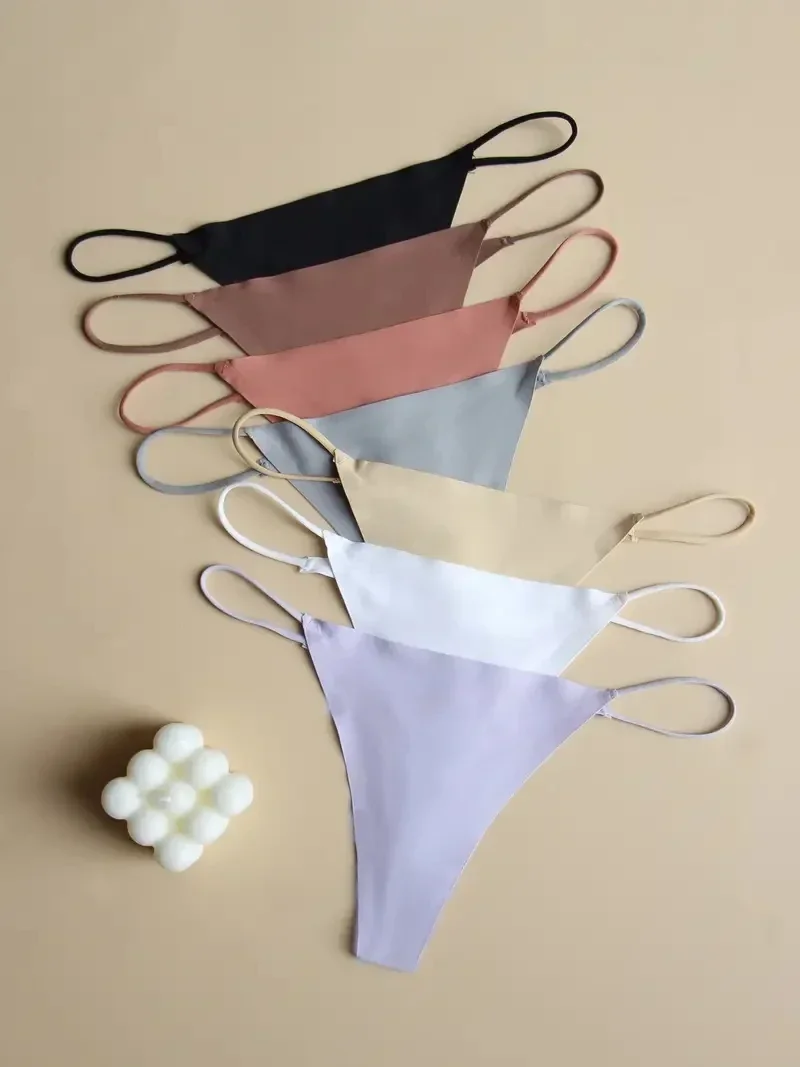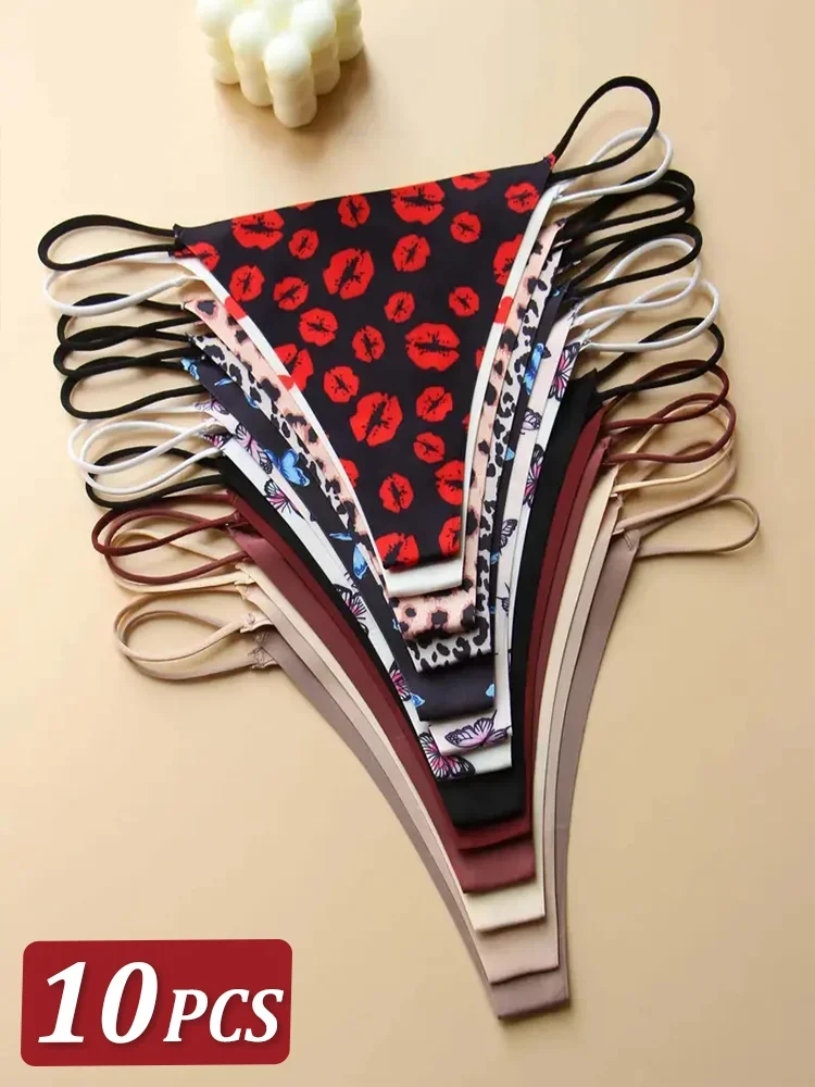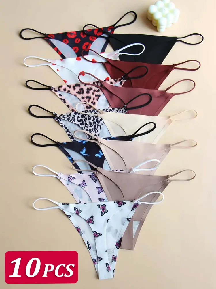 10Pcs Women Seamless Thongs Thin Strap Low Waist High Flexibility Panties Sexy Underwear Ladies Briefs T-back Comfortable Women