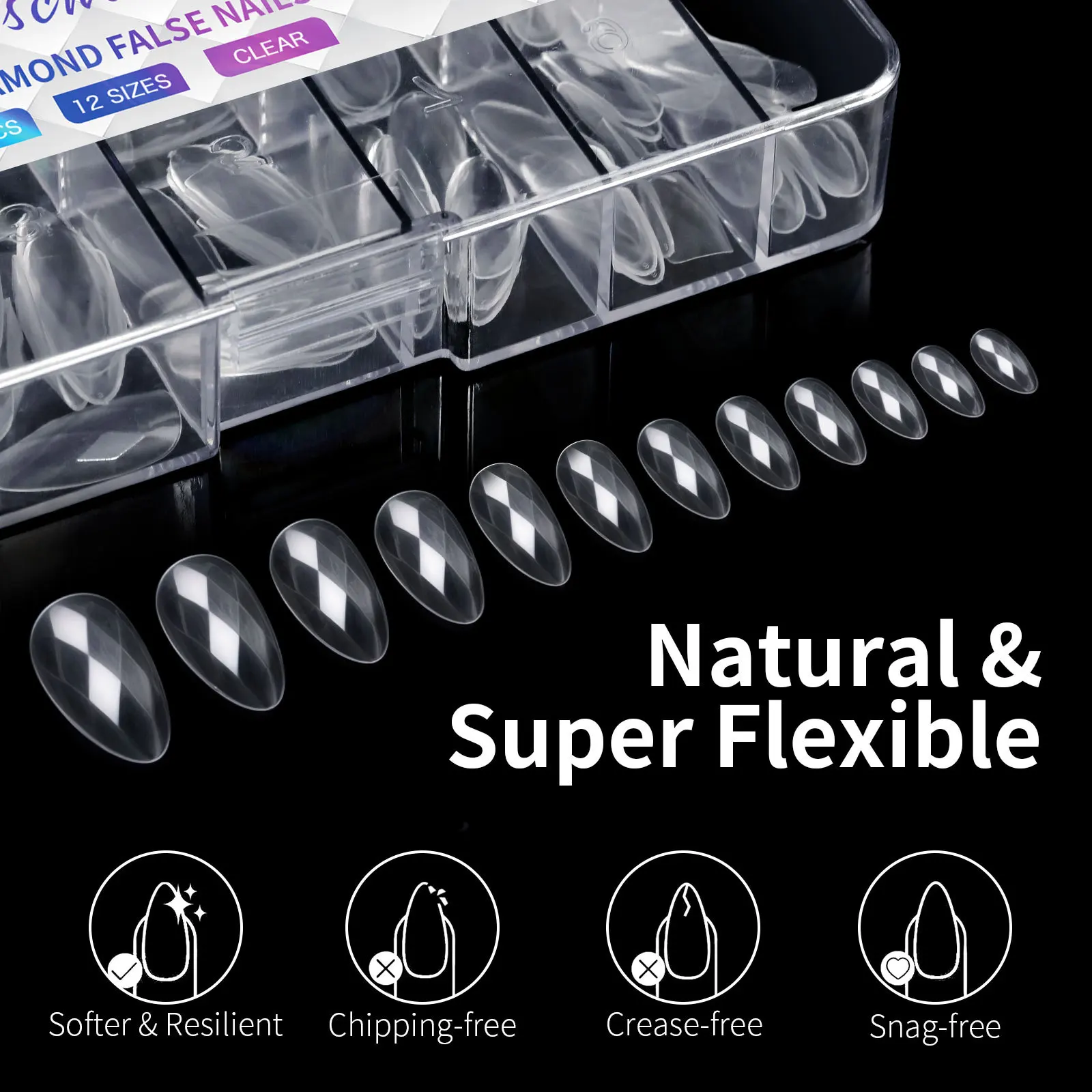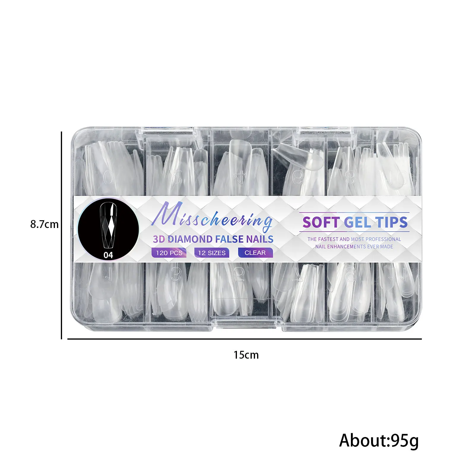120/140Pcs 3D Diamond Almond Ballet Coffin False Nails Clear Press On Nails For Acrylic Gel Reusable Fake Tips DIY Nail Supplies