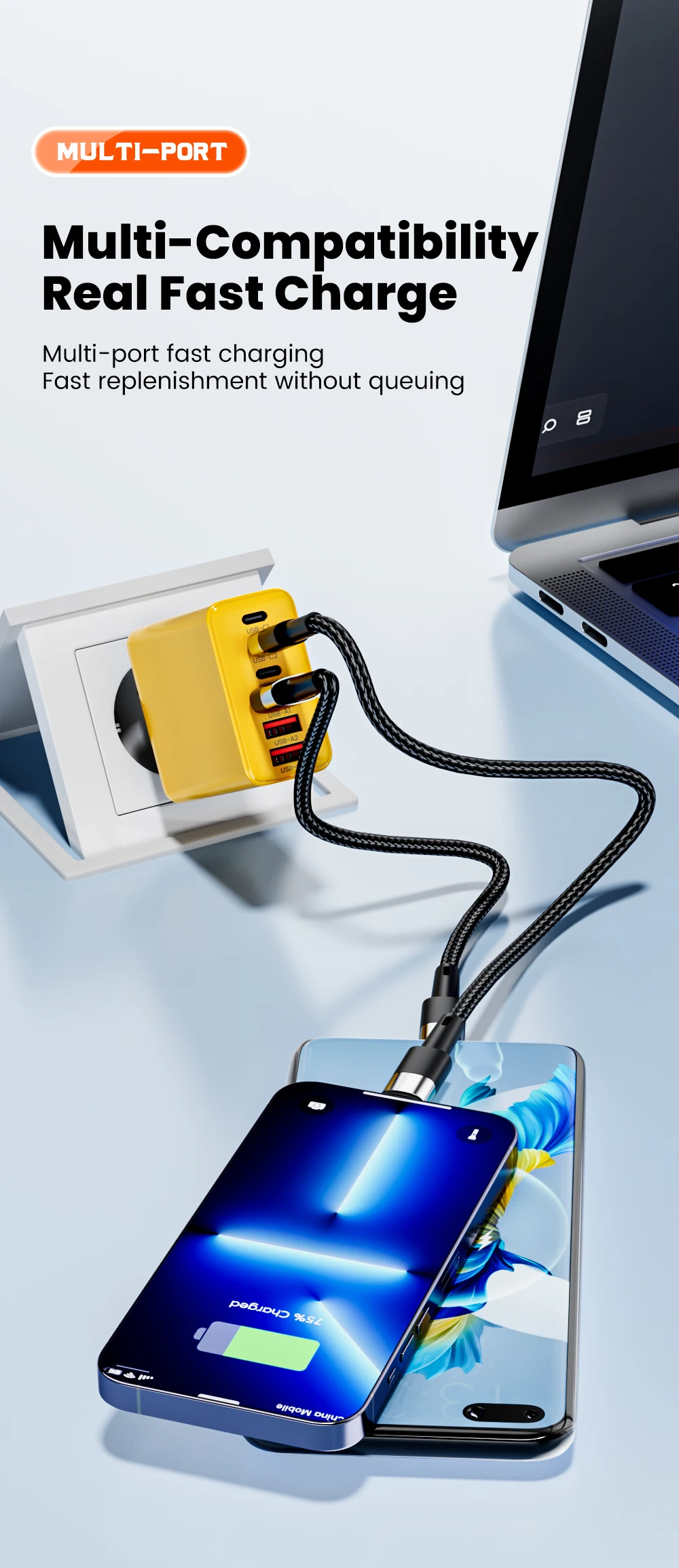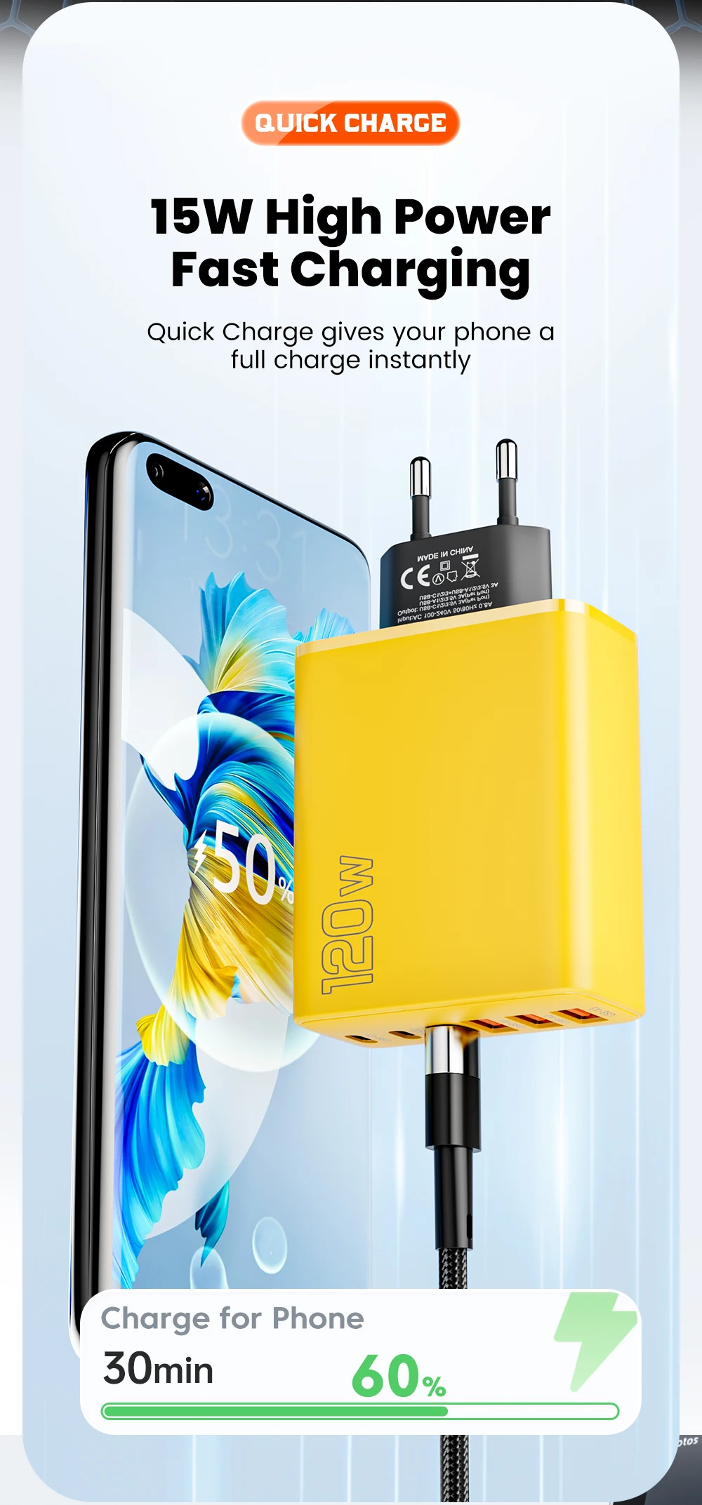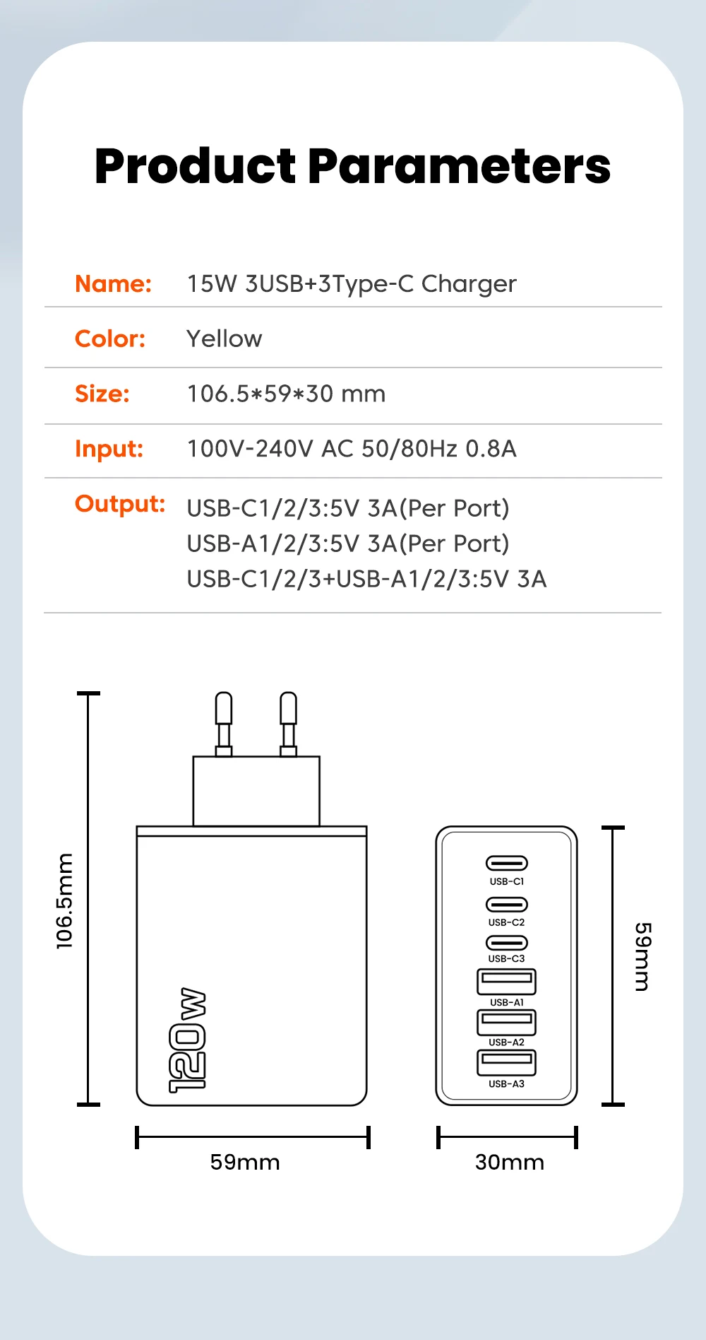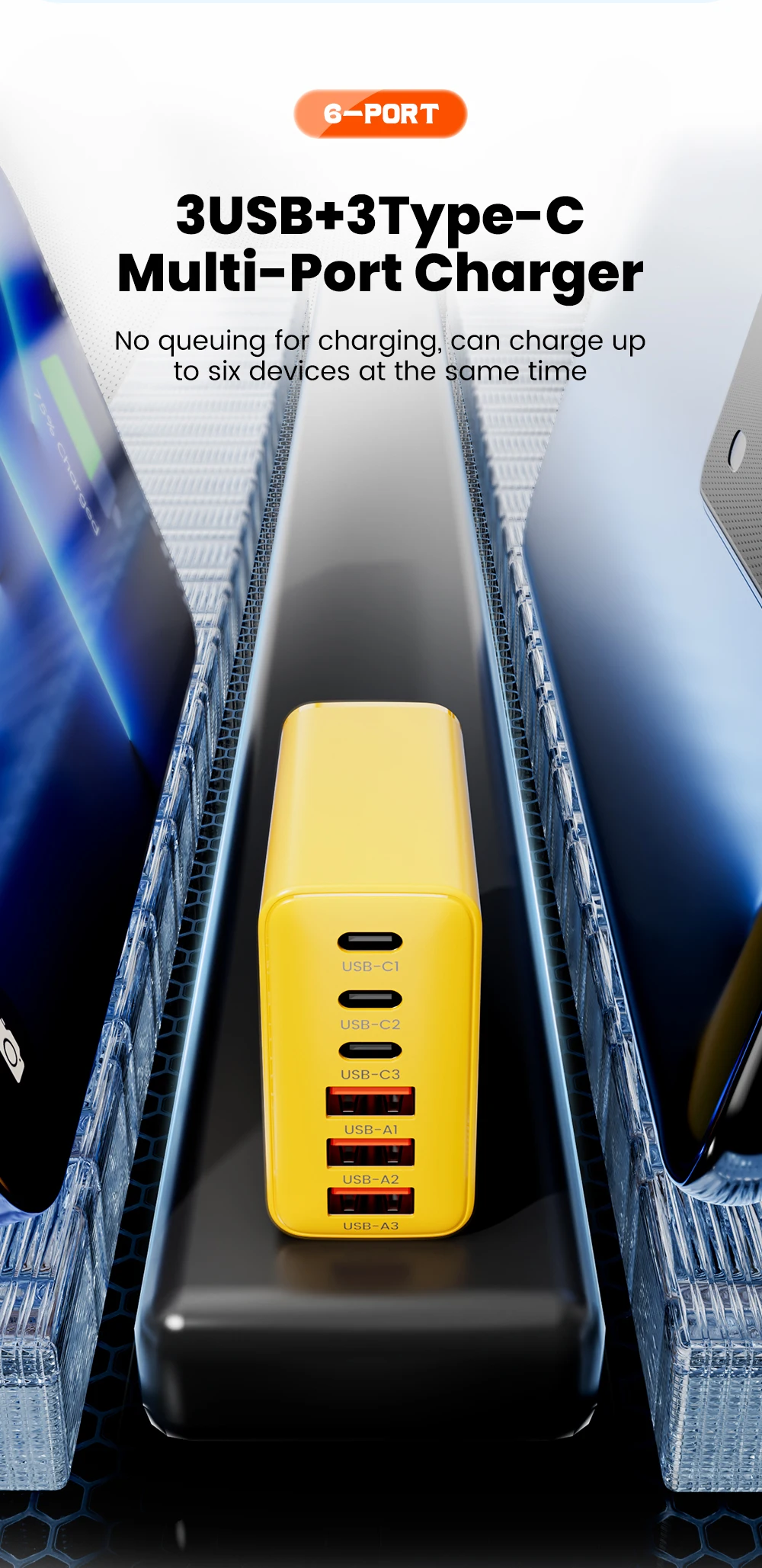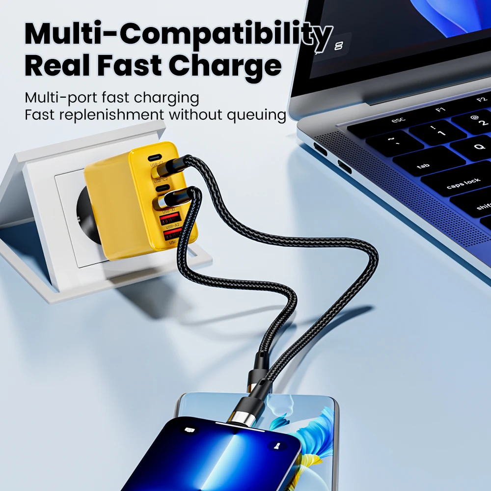 120W 6 Ports 3USB+3Type C Mobile Phone Charger Type C USB A Super Charge Adapter For Huawei Xiaomi Samsung Iphone 16 15 Devices