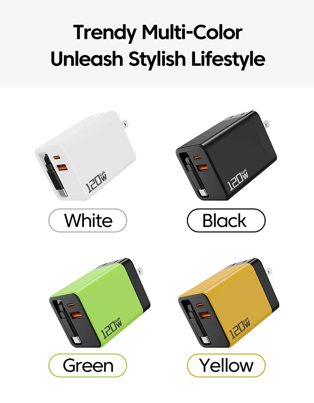 120W Super Fast Charge Type C USB Phone Charger With Telescopic Retractable USB C Cable For Iphone 16 15 Samsung Laptop