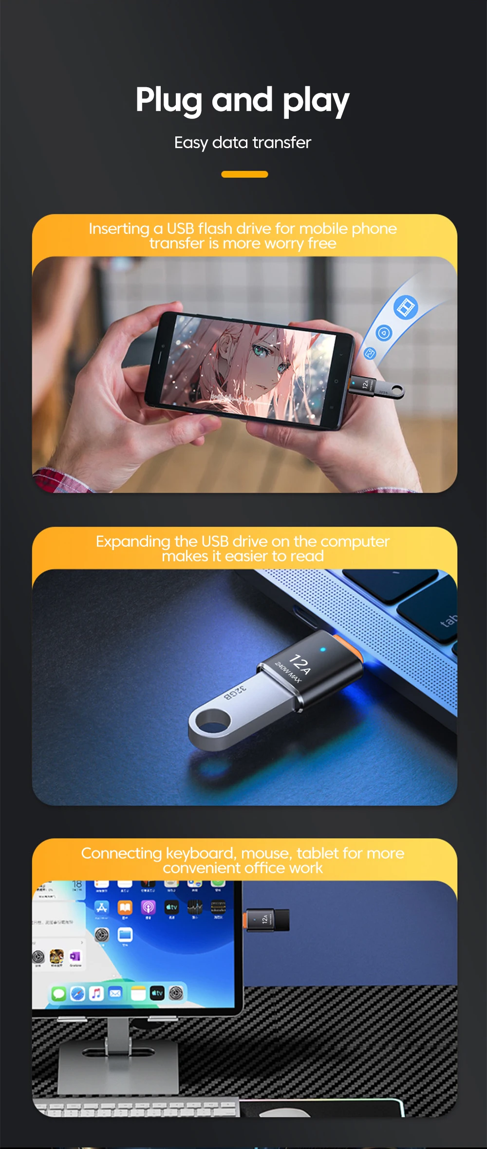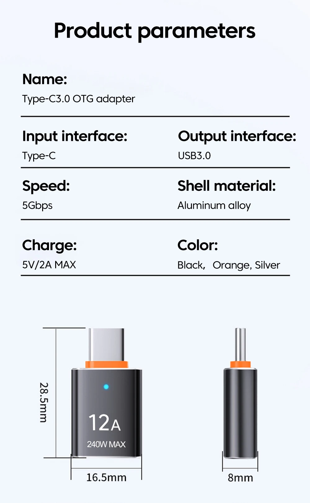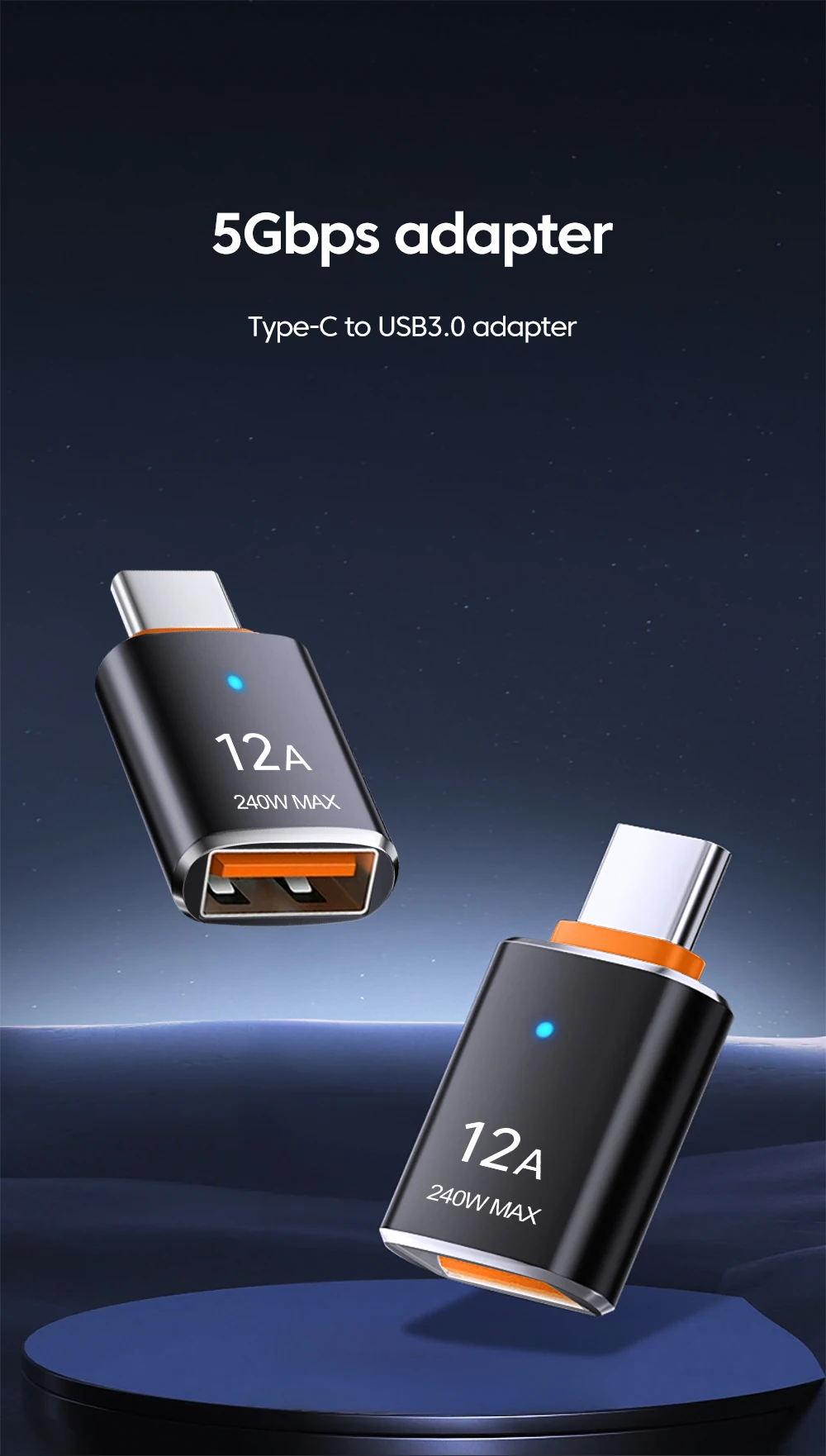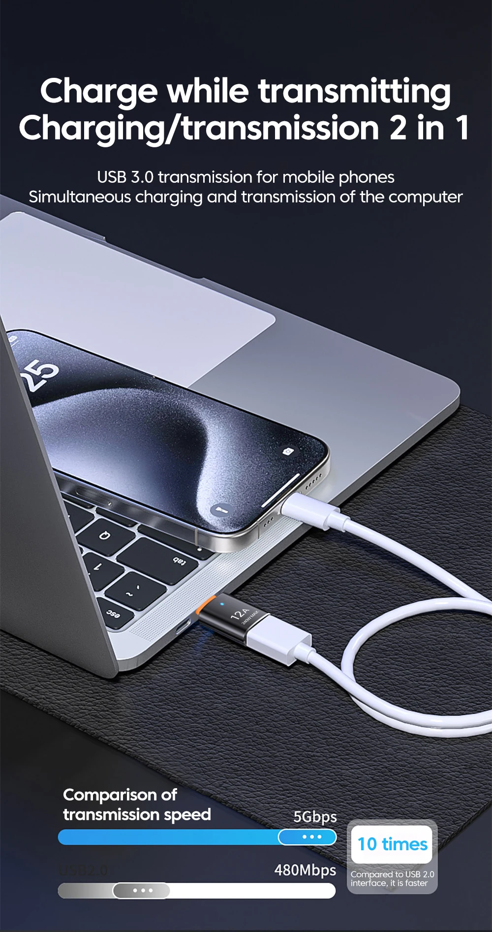 12A USB 3.0 Female To Type C Male 240W Max Fast Charging Adapter 5Gbps Transmisson OTG USB C Converter For PC cellphone