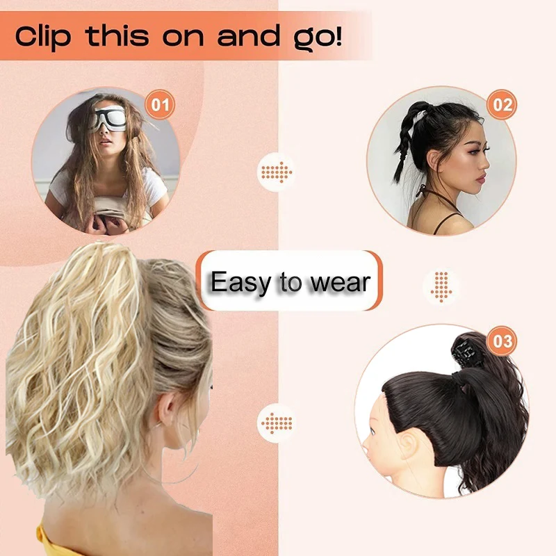 14Inch Synthetic Chic Water Wave Claw Clip Ponytail Hair Extension for Women Short Curly Claw Clip in Hairpiece