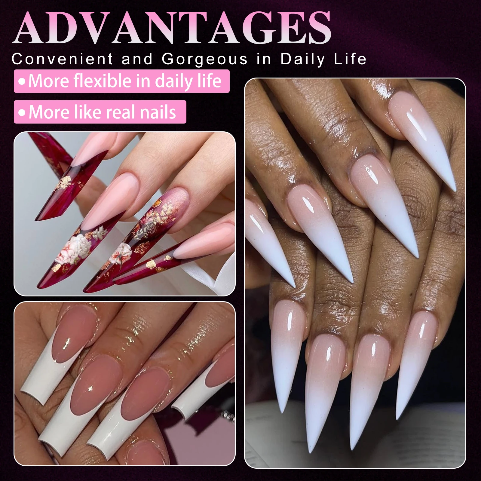 150pcs Pink French Plastic Nail Dual Forms Square Stiletto Nail Extension Molds Quick Building Mould For Manicure DIY Nail Suppl