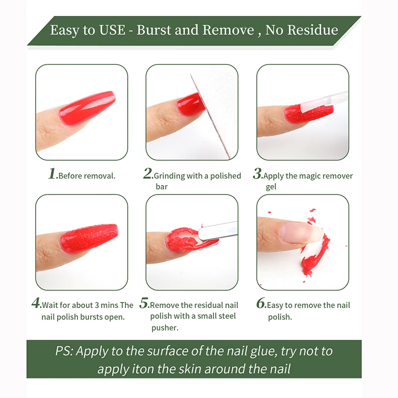15ml Nail Polish Remover For Nails in 3-5 Minutes Easily Quickly Removes Semi Permanent Soak Off UV Gel Polish Burst Gel&nailoil