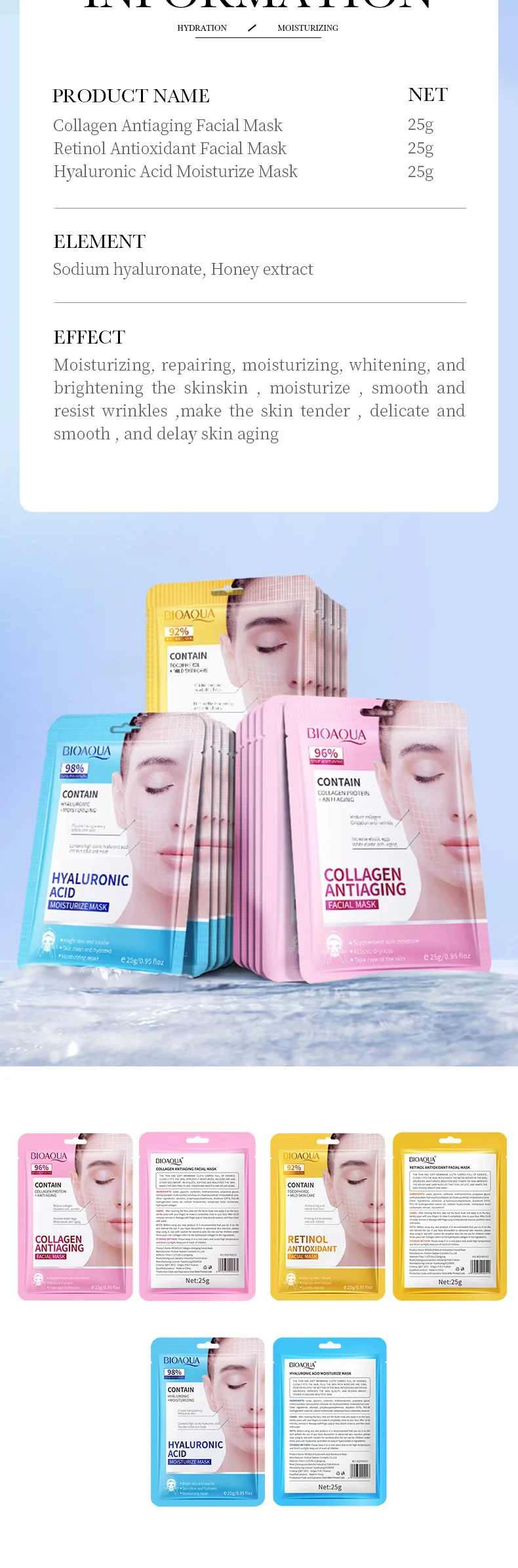 15pcs BIOAQUA Retinol Collagen Facial Masks Firming Moisturizing Nourishing Hydrating Face Mask Facial Skin Care Products