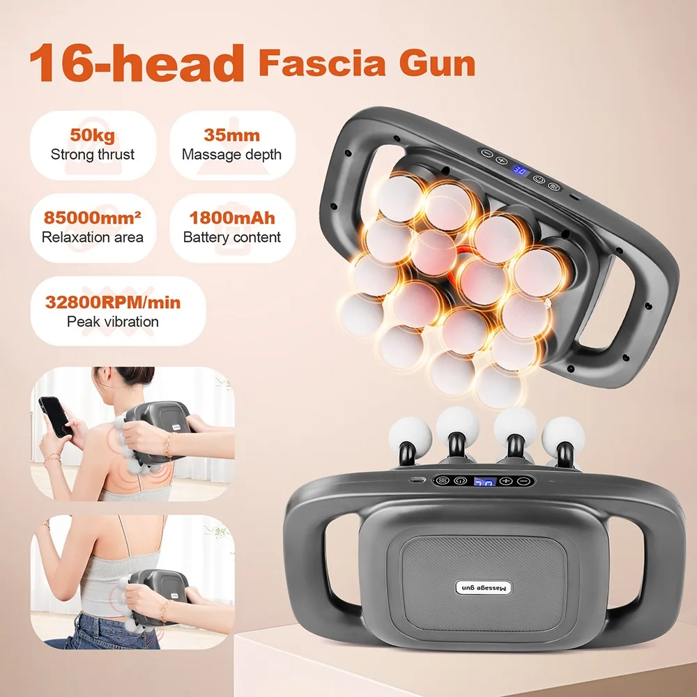 16-Head Fascia Gun High-Frequency Vibration Body Massage Gun Waist and Back Massager Neck Shoulder Massager Muscle masajeador