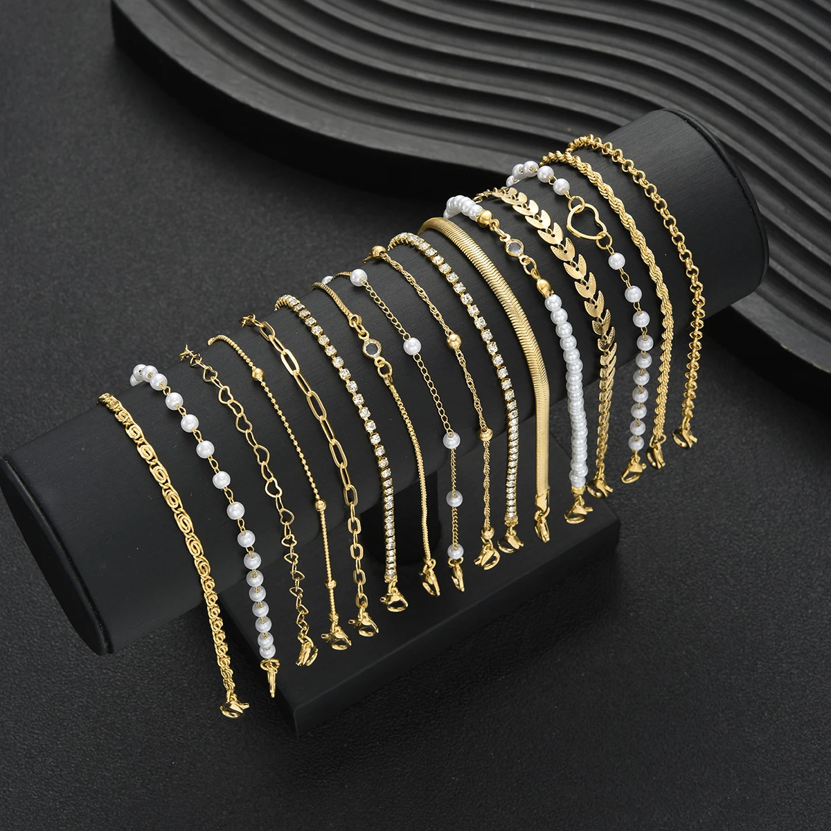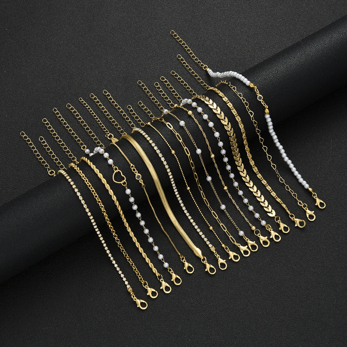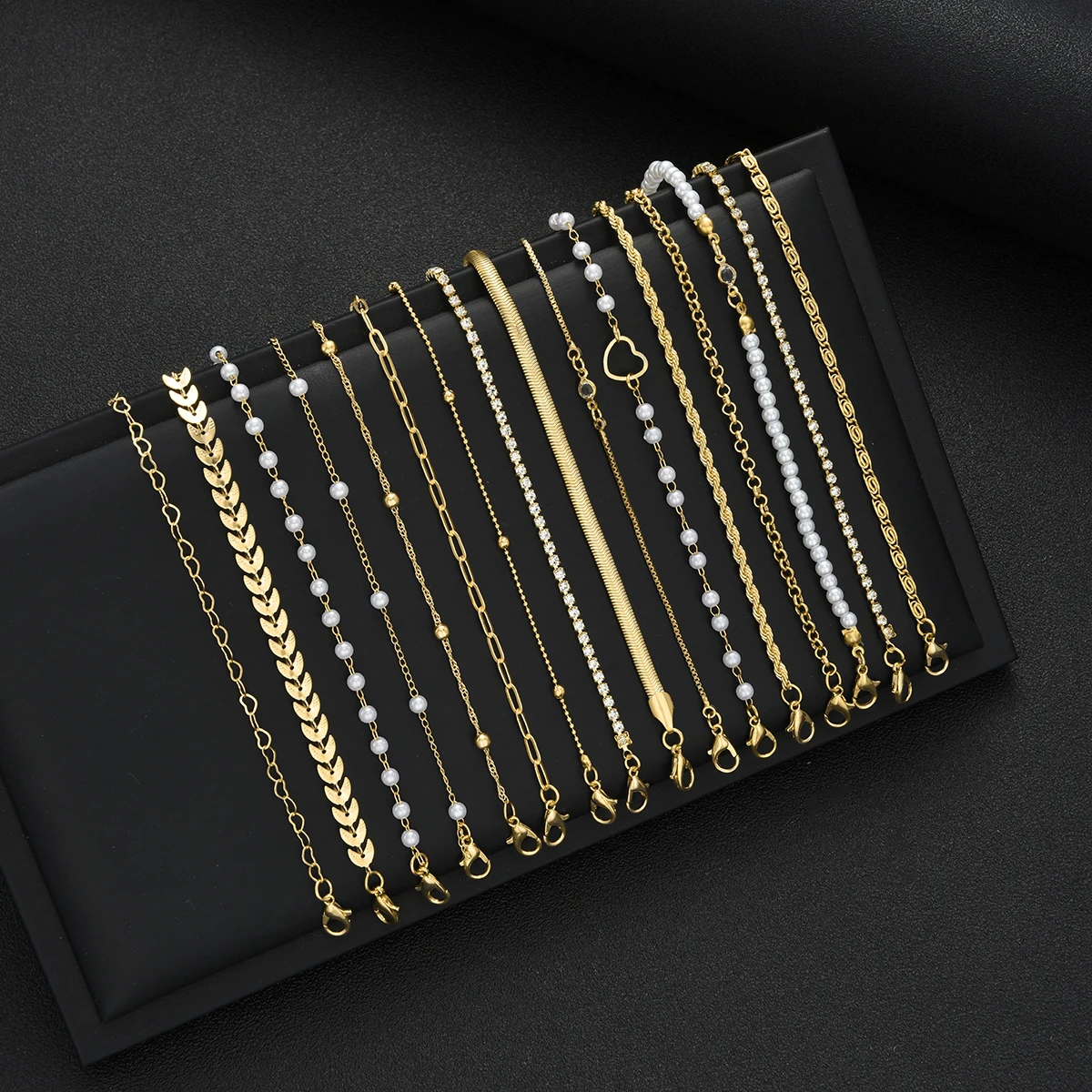 16pcs Minimalist Heart Pearl Rhinestone Snake Chain Bracelet Set for Women Elegant Gold Color Dates Vacations Daily Wear Jewelry