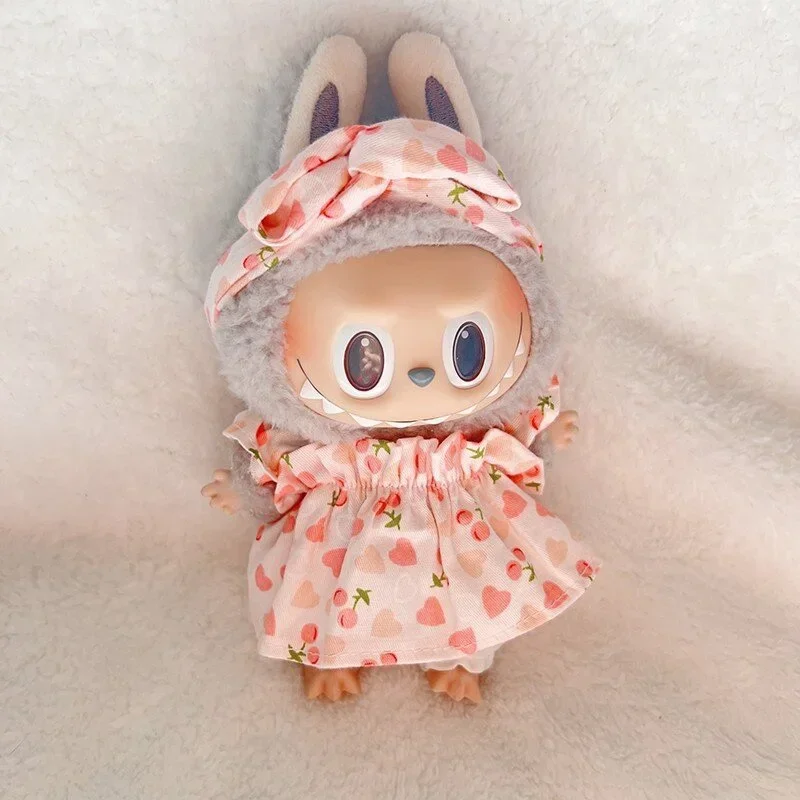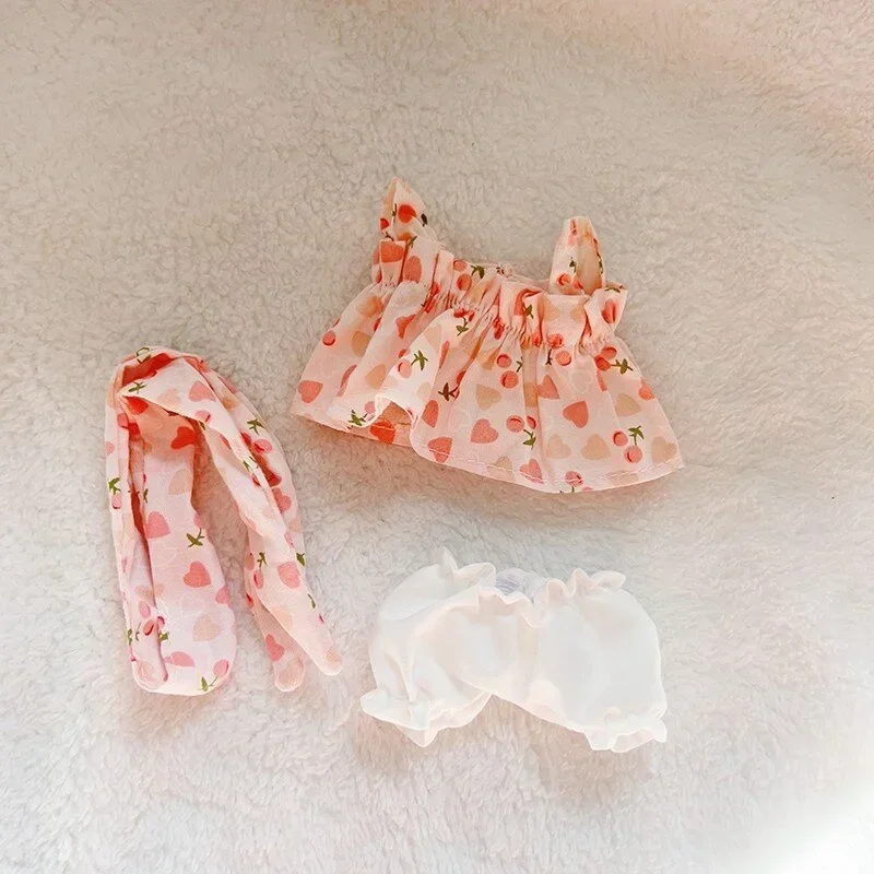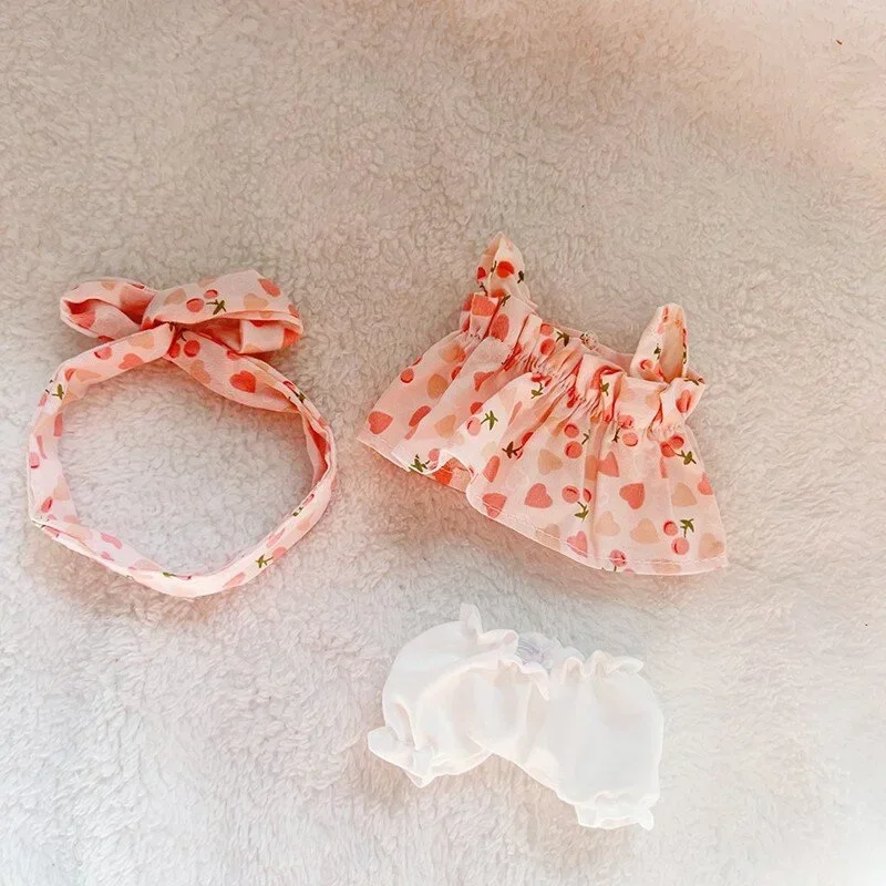 17cm Cute Mini Plush Doll’s Clothes Outfit Accessories For Labubu Idol Dolls Cherry/Pineapple Three-piece Set Gift