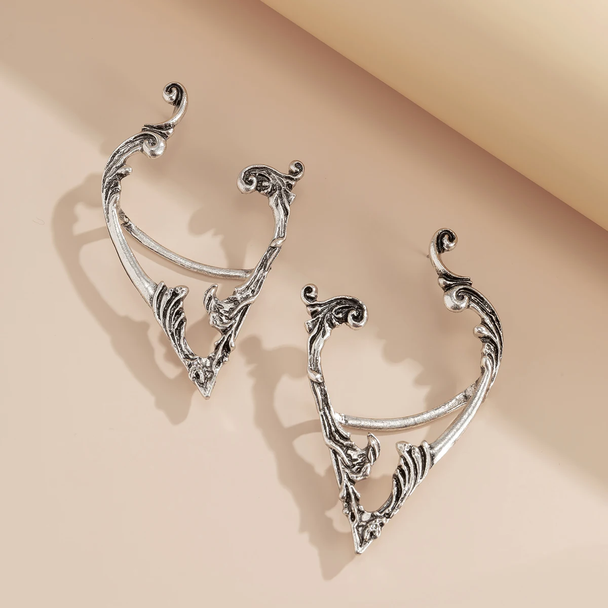 1Pair Goth Punk Fairy Elf Ear Cuff Earrings for Women Trendy Vintage Piercing Clip Earring Halloween Jewelry Accessories Gift