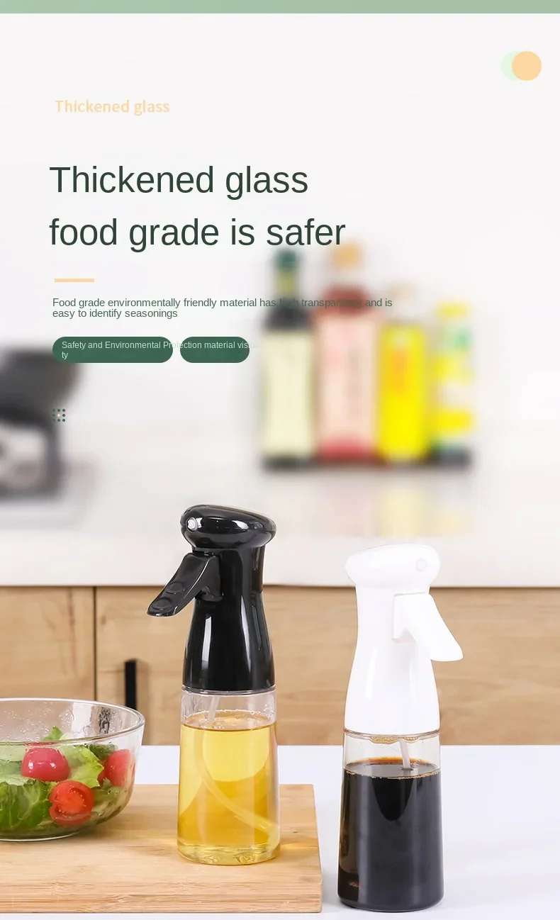The oil spray bottle is designed with a transparent body which can provide visuable sign about oil volume.