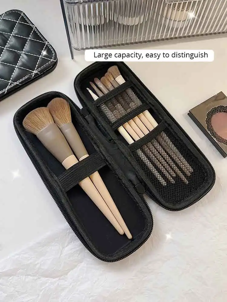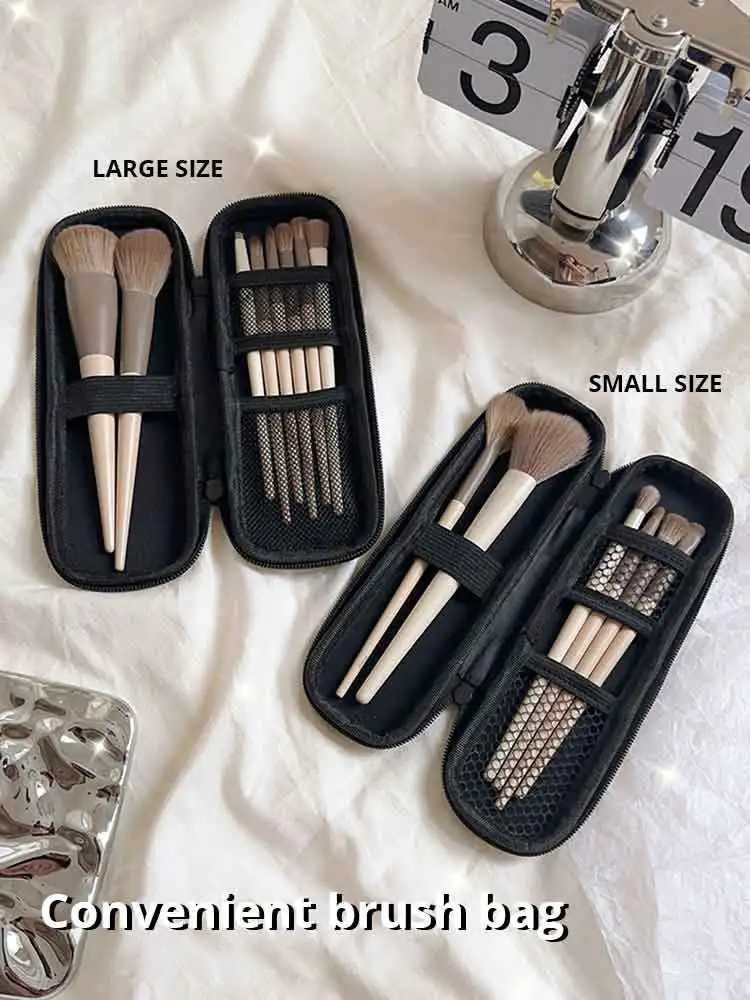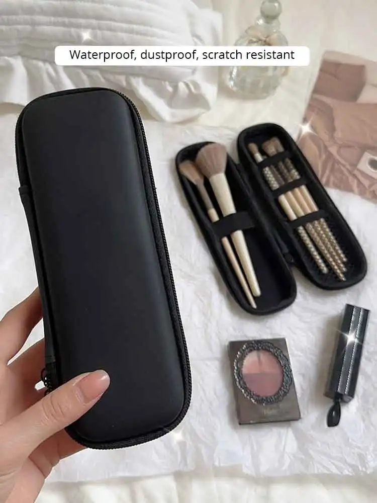 1pc Black Cosmetic Bag Waterproof Double Zipper Makeup Brushes Case Women Storage Bags Portable Travel Brush Holder Makeup Case