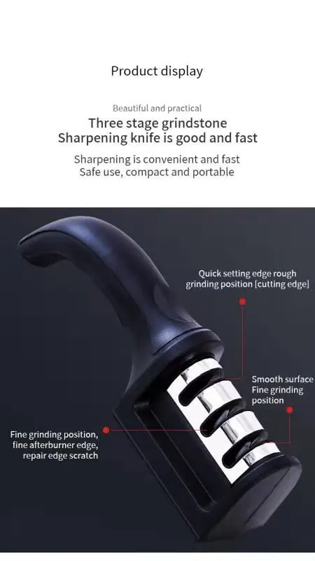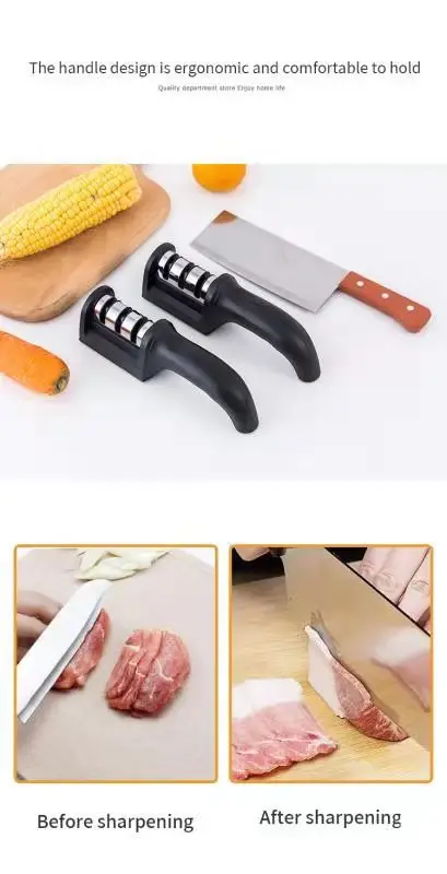 81 reviews for 1Pc Black Kitchen Three Segment Knife Sharpener Household Multi Functional Hand Held Three Purpose Sharpening Stone Kitchen Tool