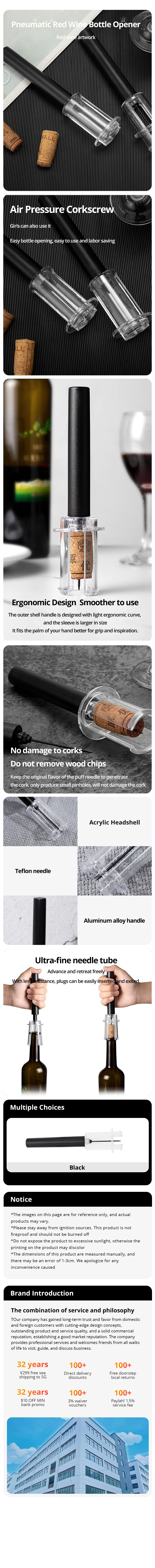 The air pressure bottle opener for red wine adopts the principle of vacuum and air pressure, which is quick to open wine and easy to operate