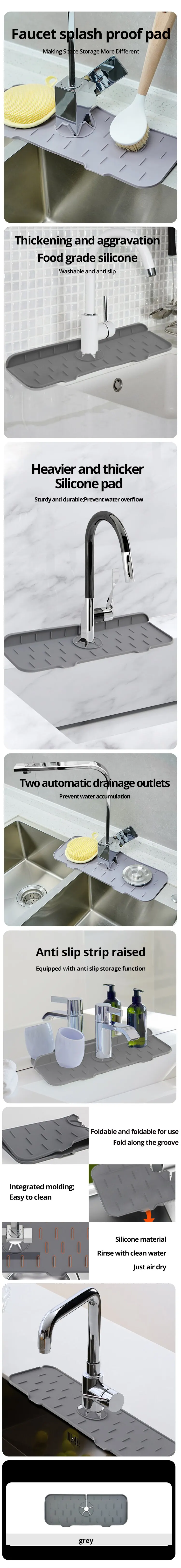 30 reviews for 1PC Grey 37X14CM Kitchen Faucet Absorbent Mat Sink Splash Guard Silicone Drainage Drying Pad Countertop Protection