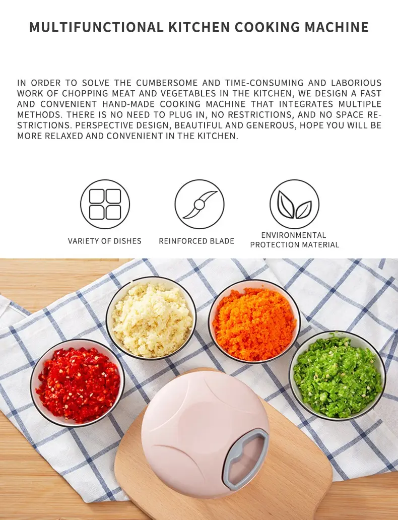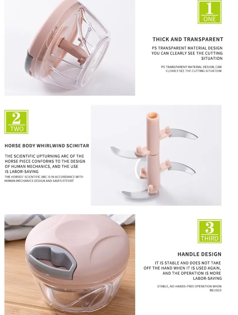 35 reviews for 1pc Pink/Blue 500ML/900ML Household Kitchen Garlic Chopper Mashed Hand Pulled Meat Grinder Multifunctional Vegetable