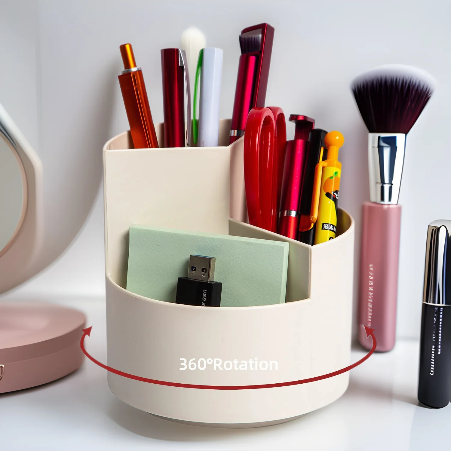 1pc Rotating Pen Holder Storage Box Divided Makeup Brush Office Student Desktop Storage