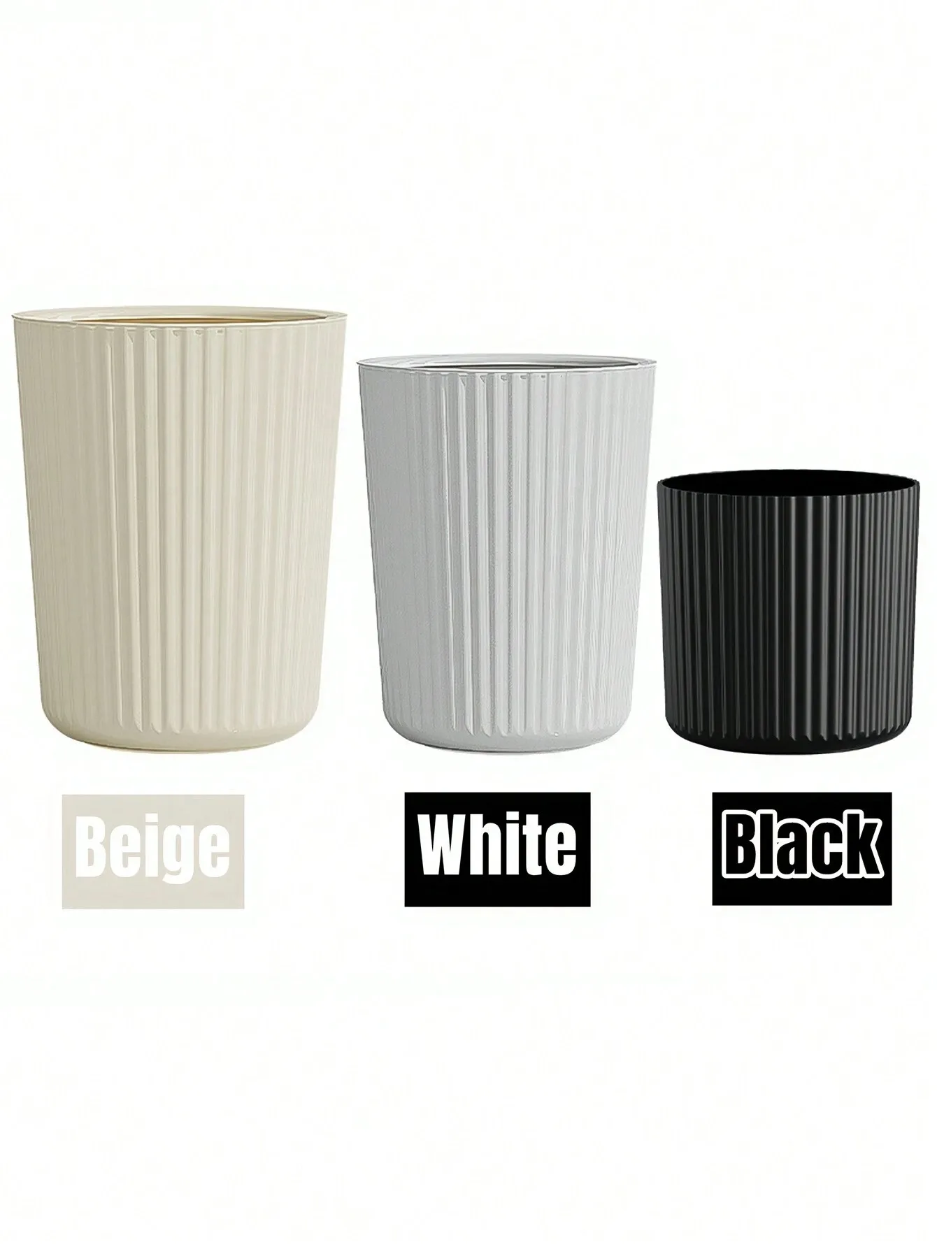 1pc Simple Striped Trash Can, Paper Basket Bin For Bedroom, Living Room, Bathroom, Waste Management Container