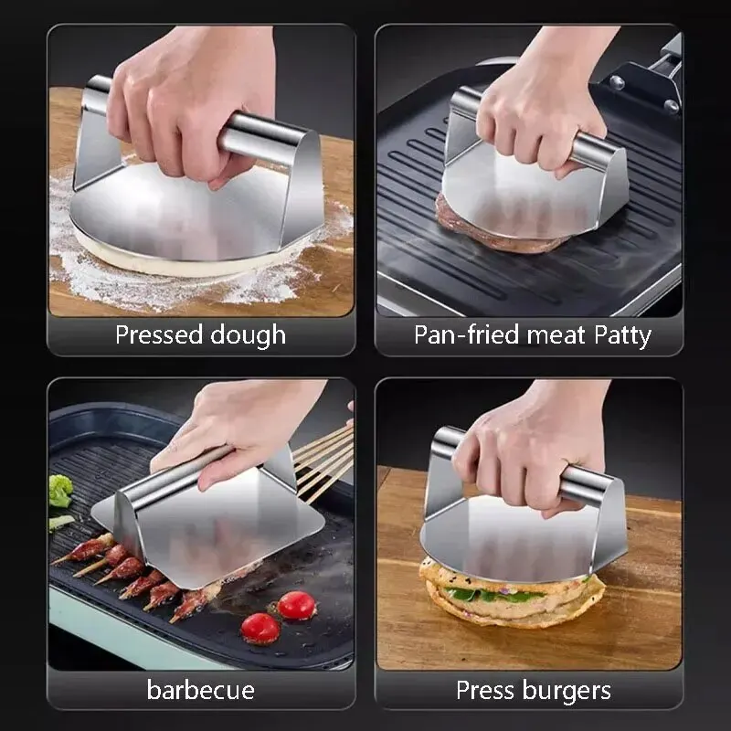 Practical kitchen tool, both for crushing burgers or other types of meat. Very strong material.