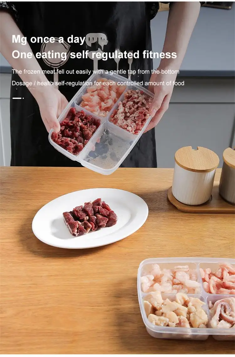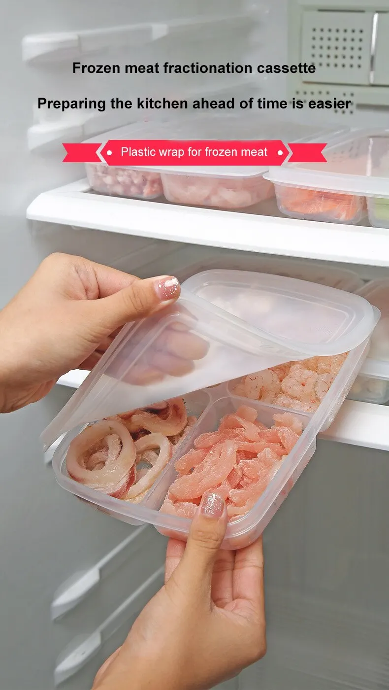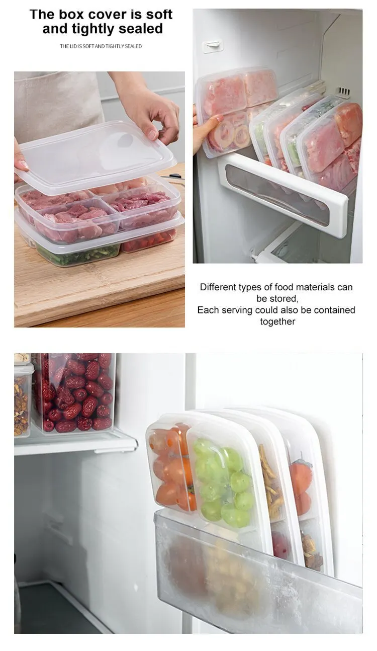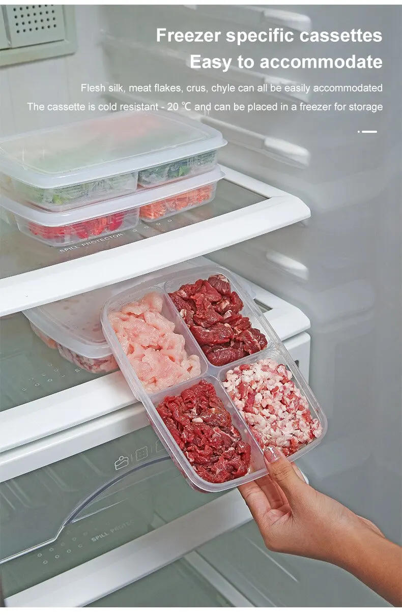 1pc Transparent Four Grid Refrigerator Large Capacity Storage Box Frozen Meat Compartment Food Sub-packed Kitchen Tools