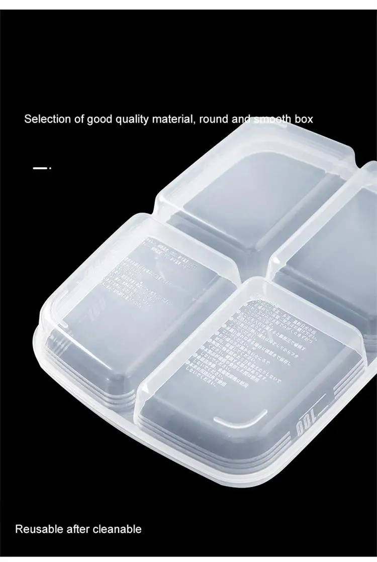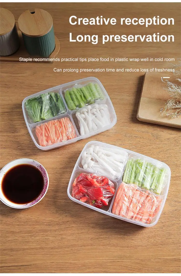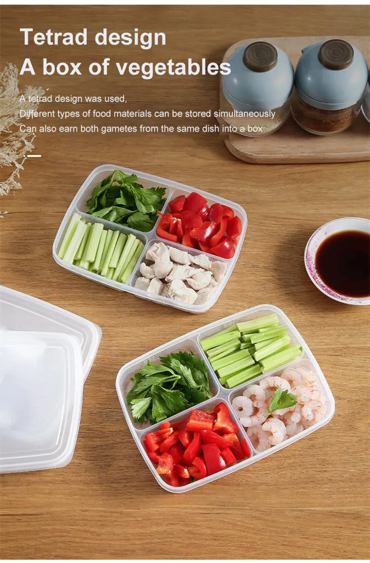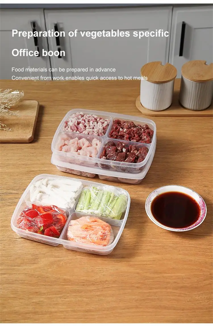 1pc Transparent Four Grid Refrigerator Large Capacity Storage Box Frozen Meat Compartment Food Sub-packed Kitchen Tools