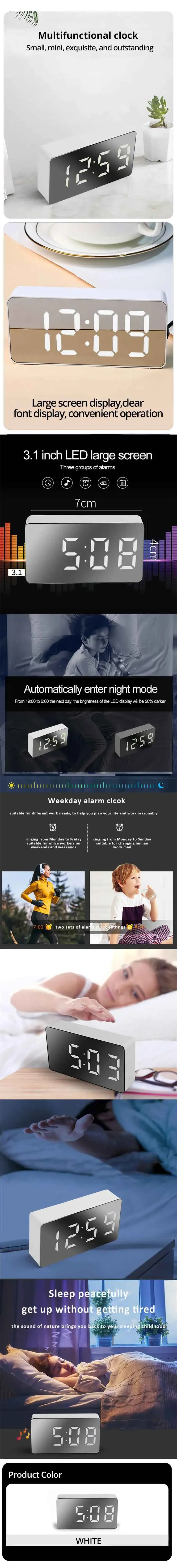 64 reviews for 1Pc White LED Mirror Table Clock Snooze Display Time Night Light Desktop USB Alarm Clock Home Decor