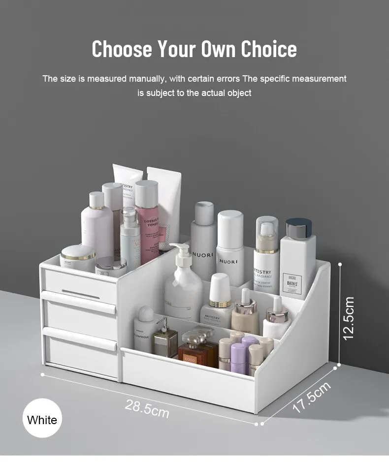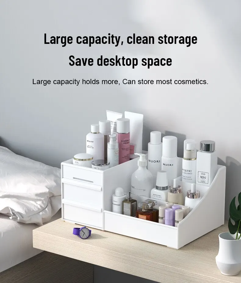 Clear filters• Versatile Makeup Storage :This white drawer makeup storage box is perfect for organizing your cosmetics and skin care products. It’s ideal for dormitory use or any small space.